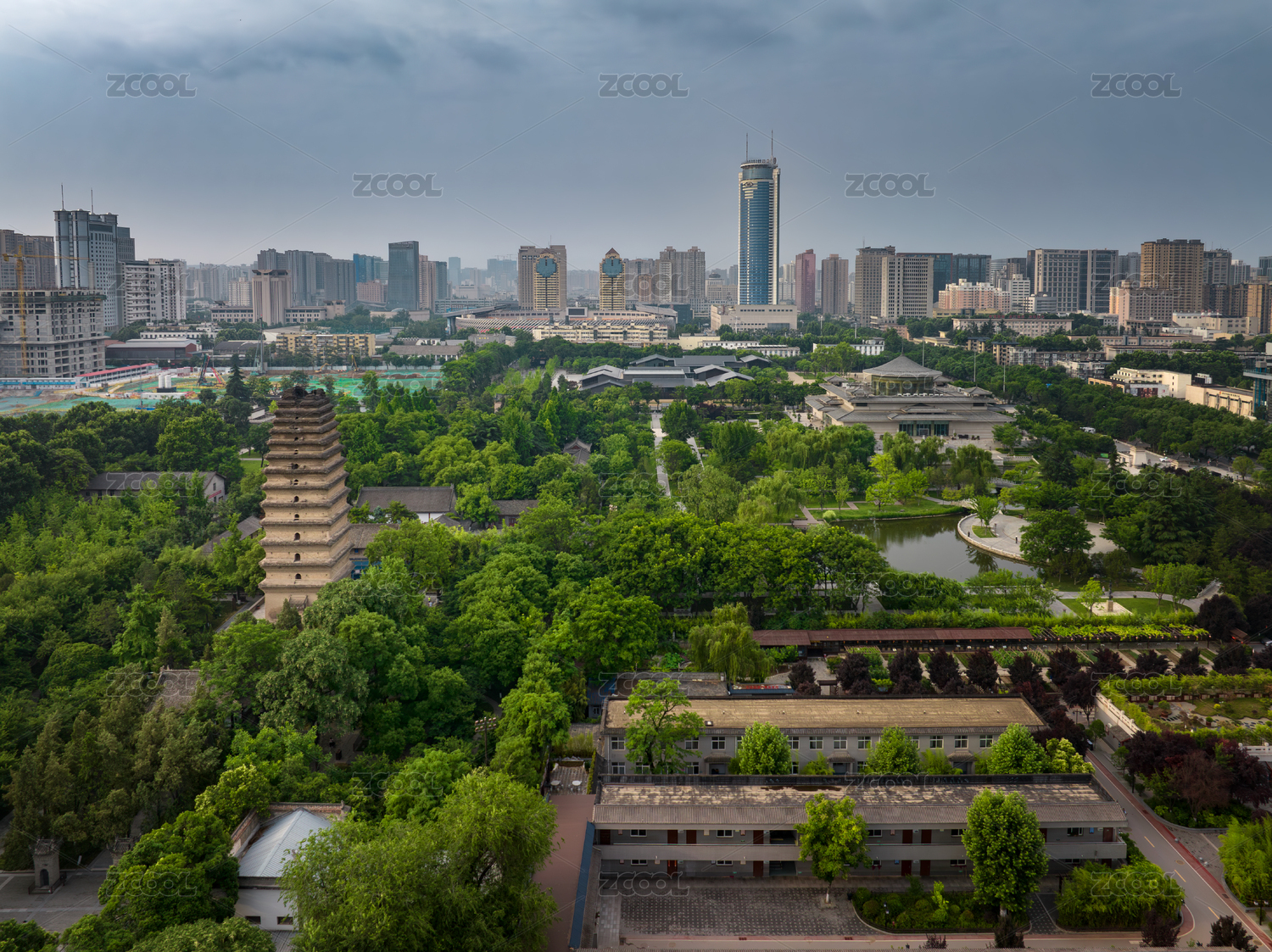 航拍河北省石家庄市正定县开元寺和须弥寺