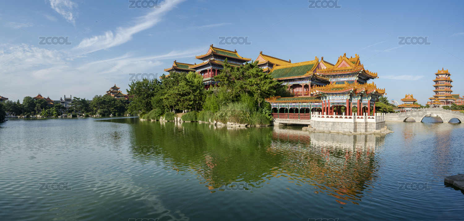 蓬莱三仙山,园林,景观,湖,城堡,建筑,古建筑,旅游景点,岛,桥