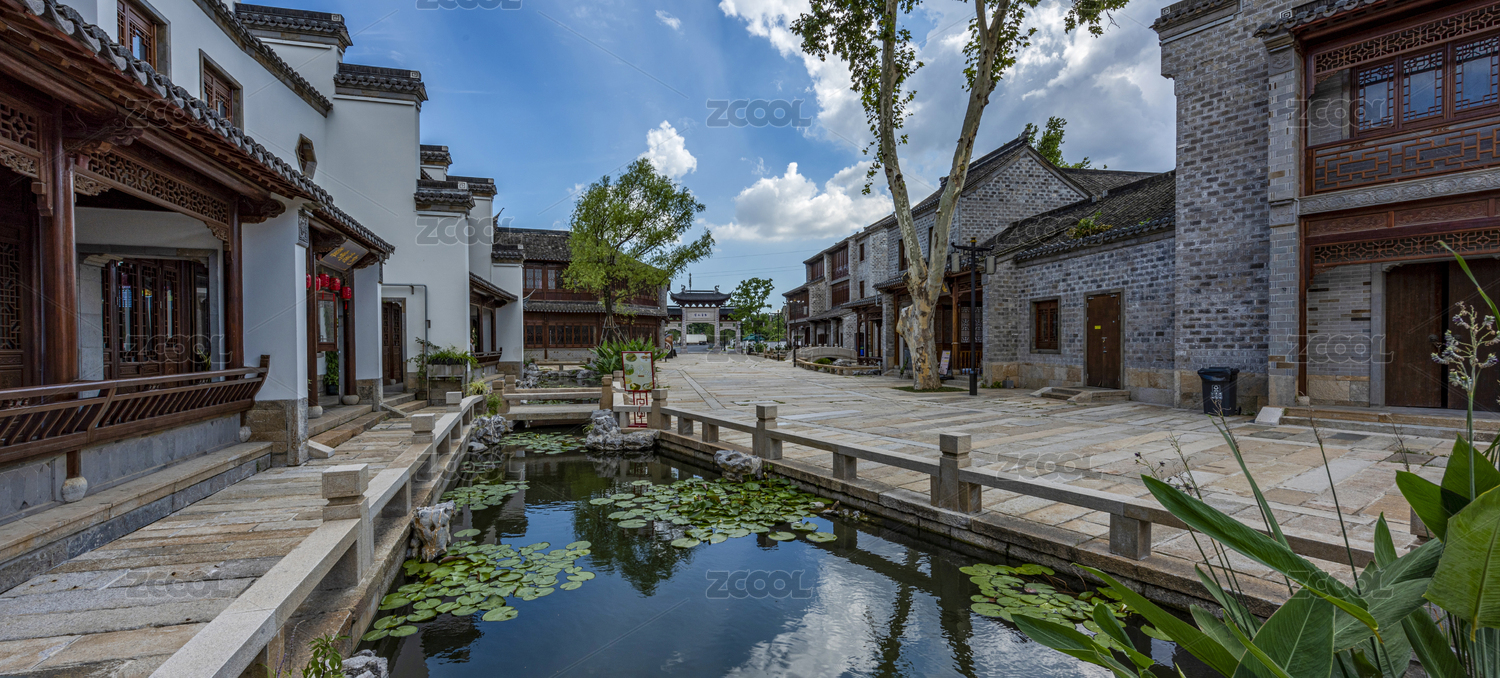江南粉墙黛瓦砖砌古建筑群生态风光