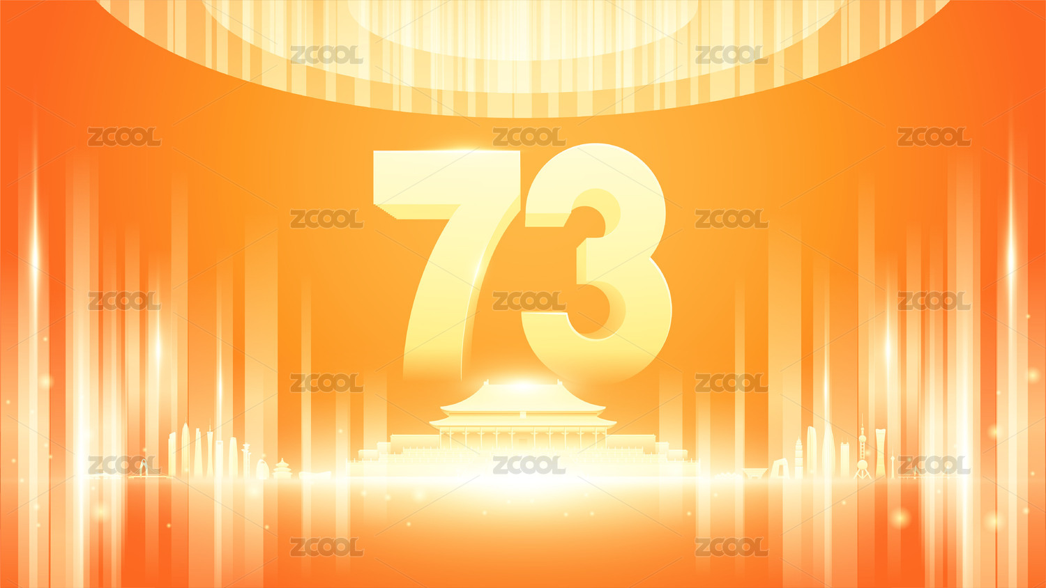 插画,背景,周年庆,周年,73,国庆,国庆节,十一,红绸,太阳
