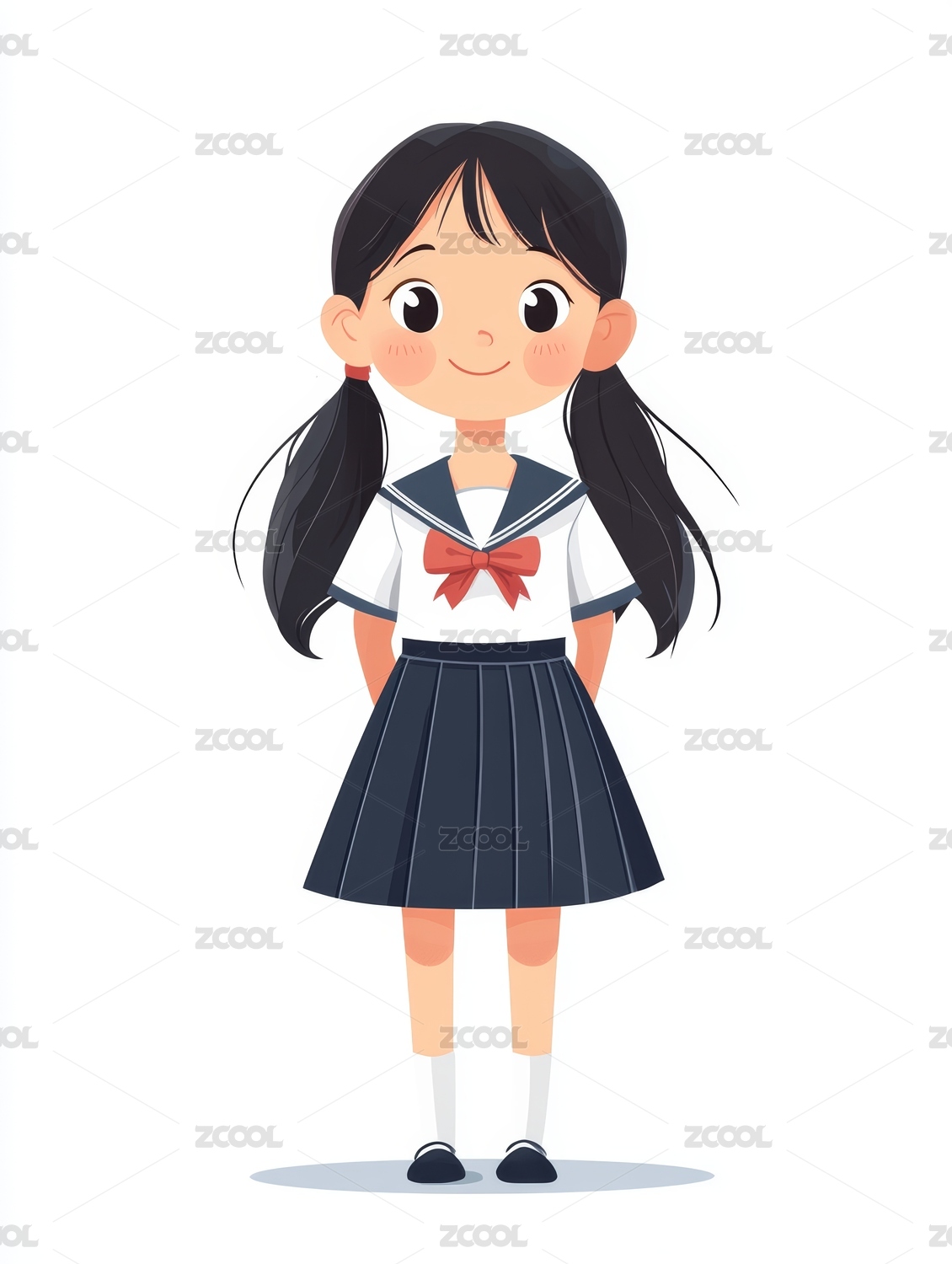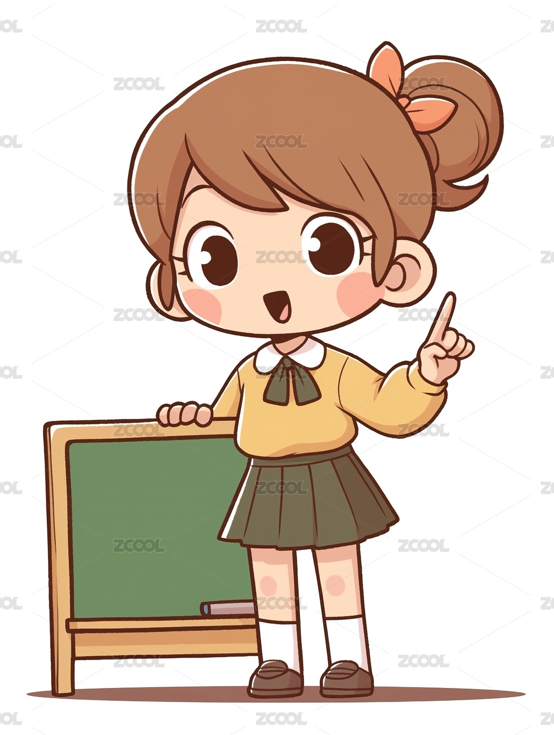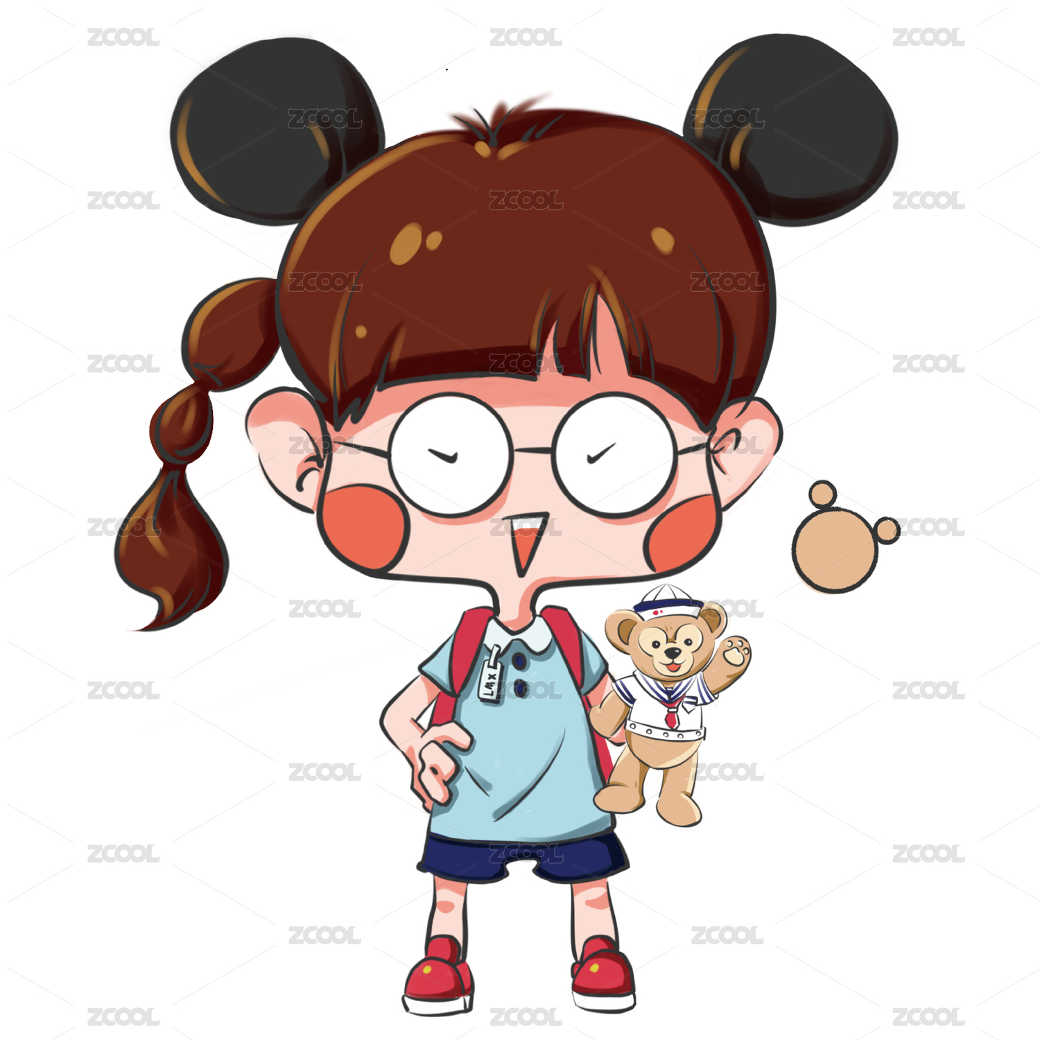 卡通开心快乐学习的马尾辫可爱女孩教育插画