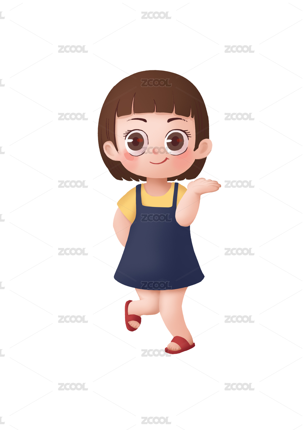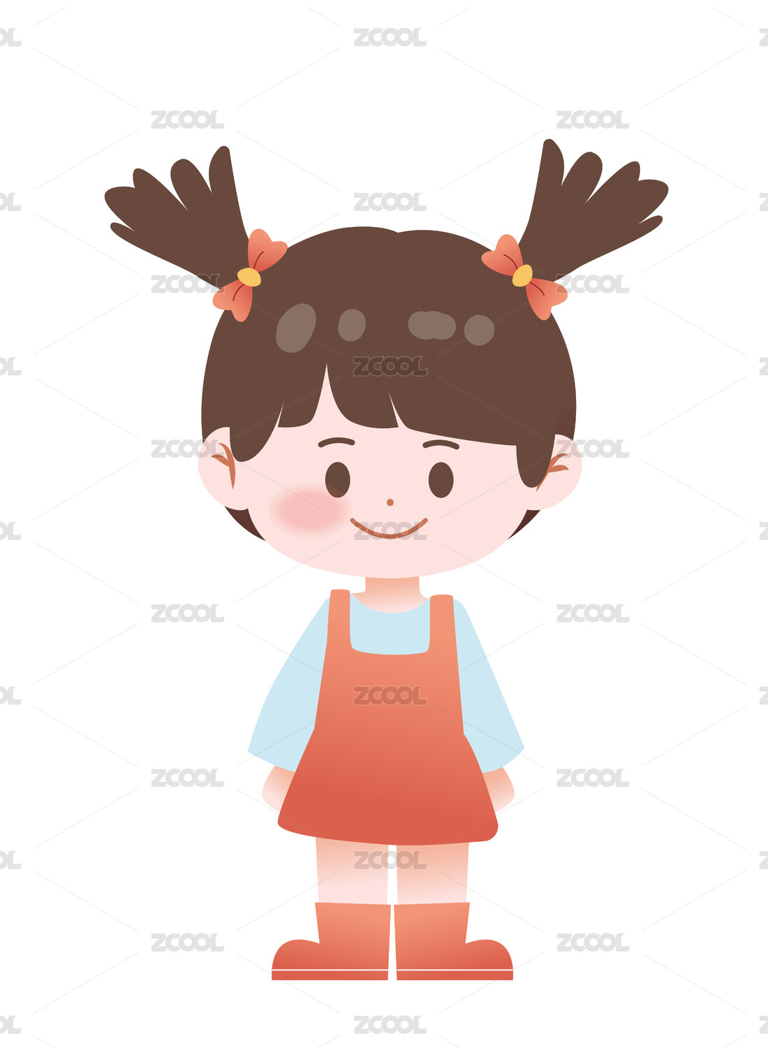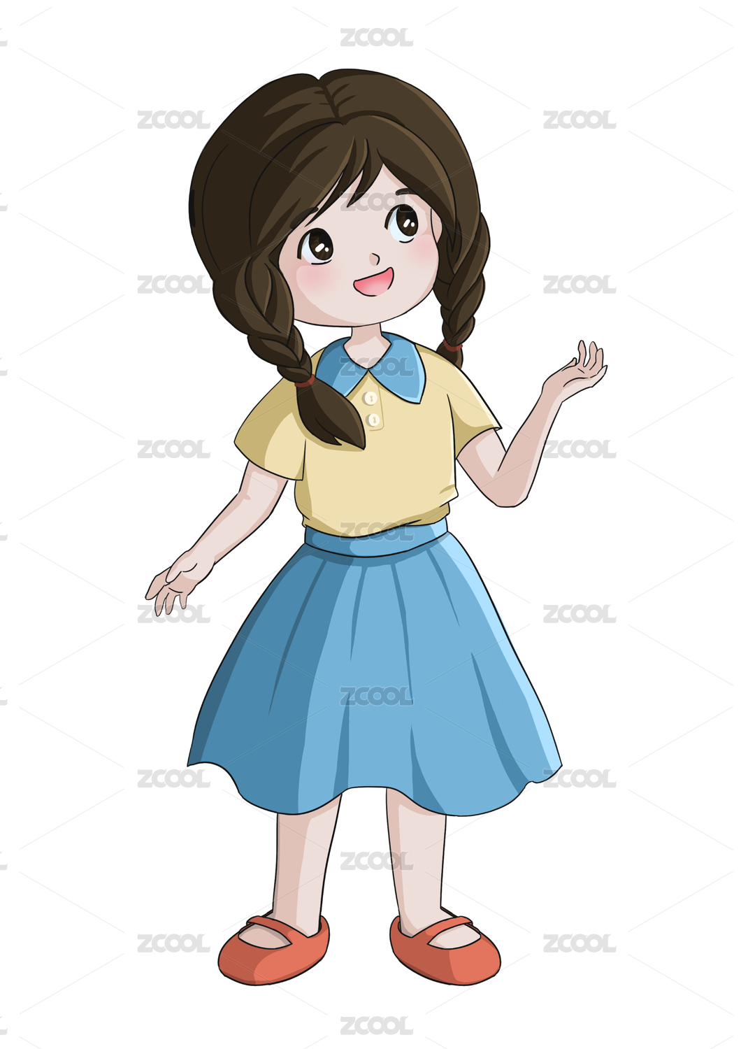 穿着蓝色连衣裙戴着粉色蝴蝶结的卡通女孩高