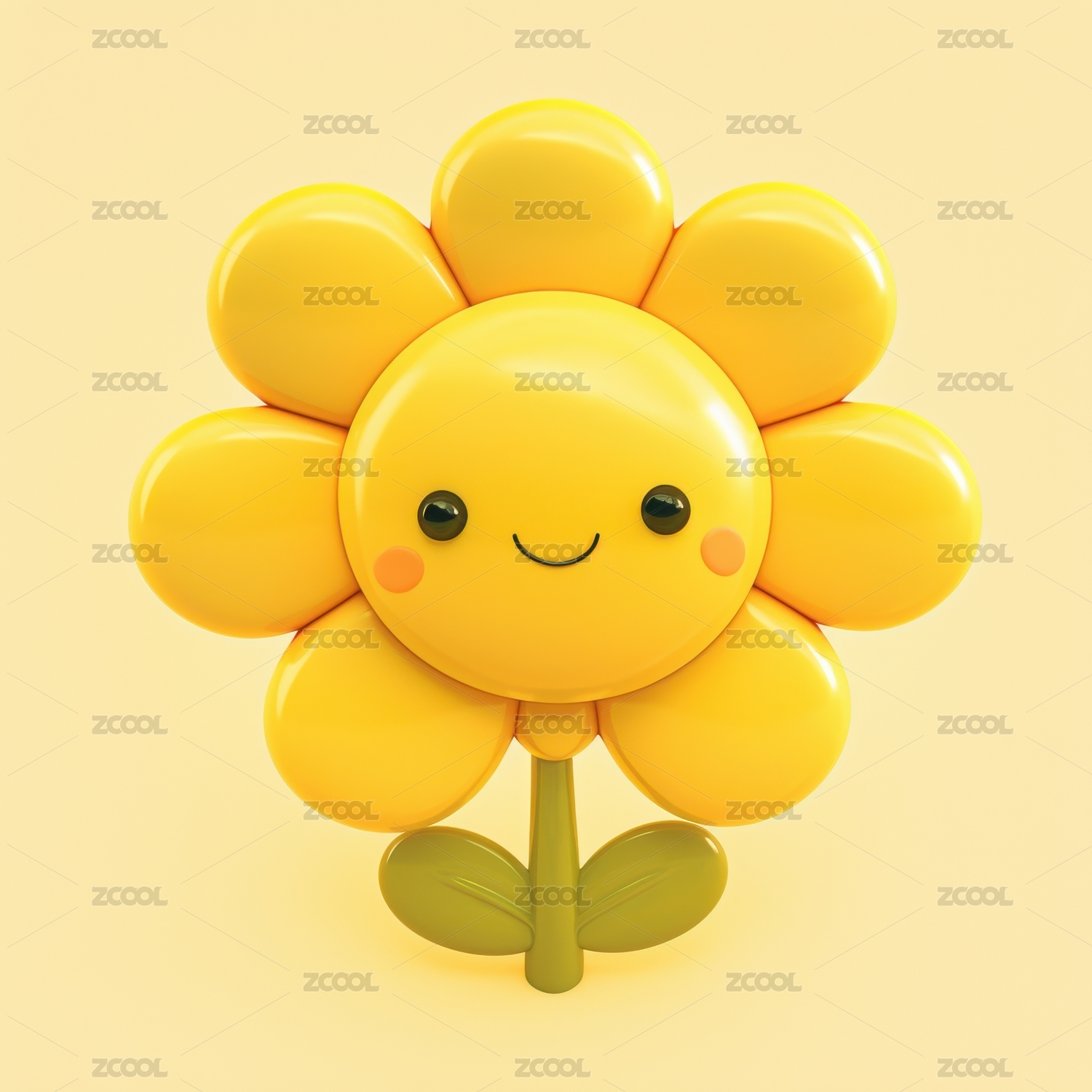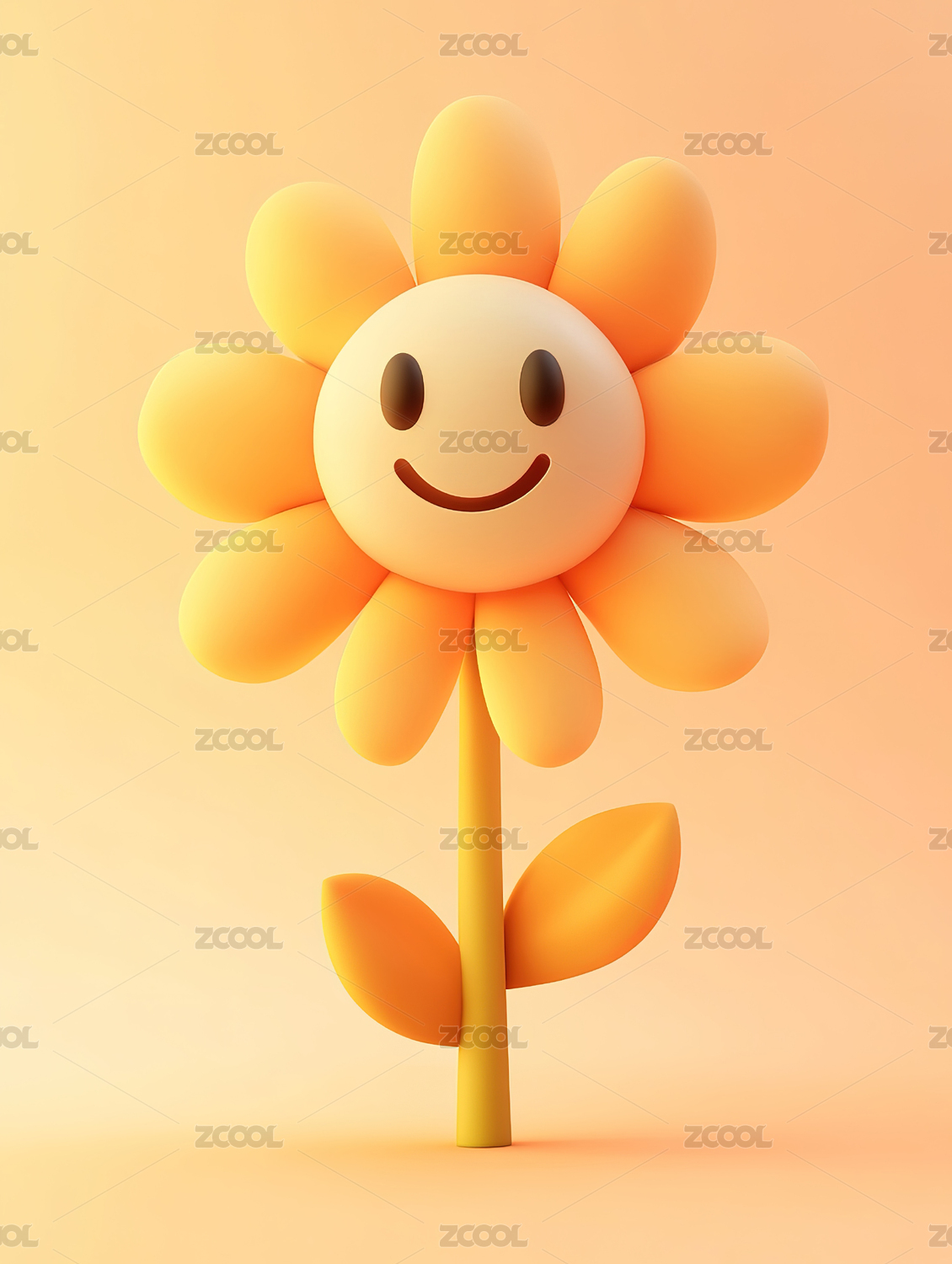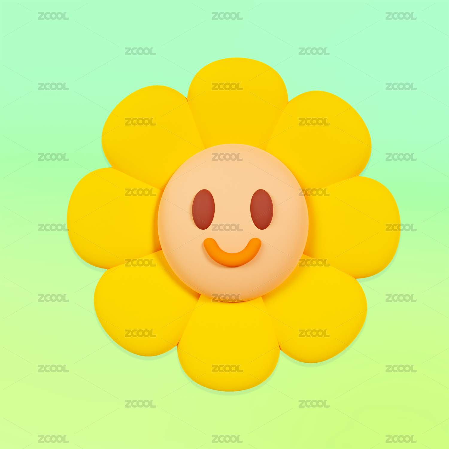 3D渲染的春天向日葵表情花朵植物可爱花卉