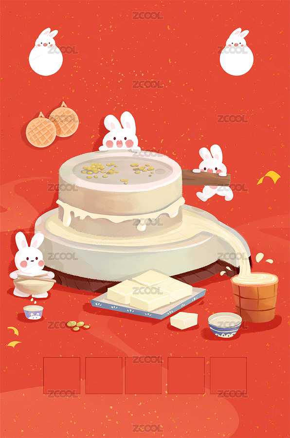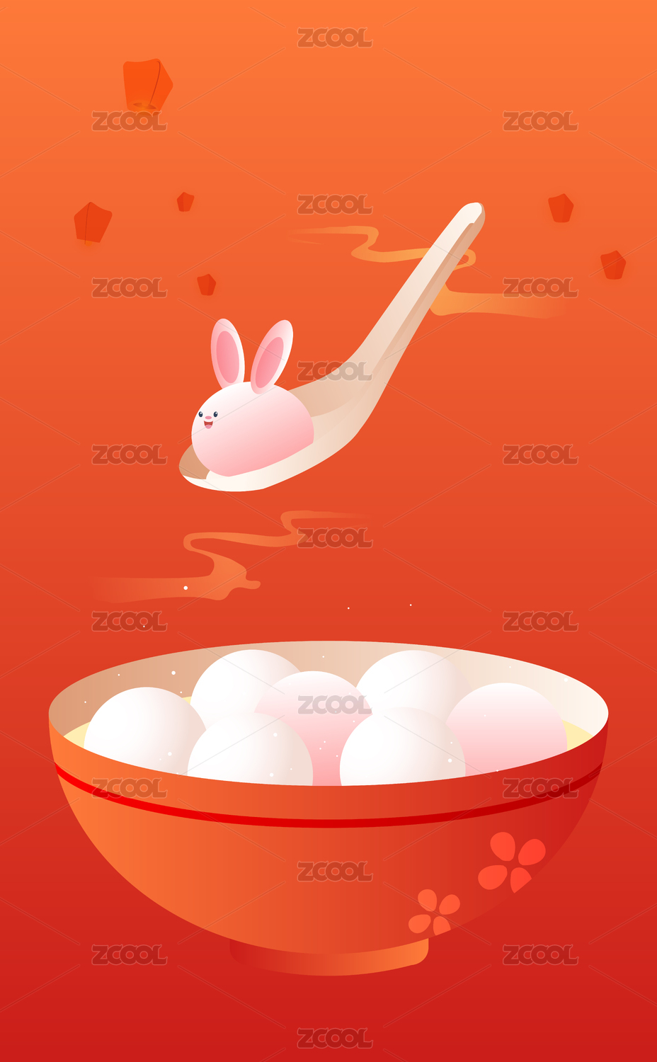 年俗,插画,原创,卡通,兔年,春节,贺图,红色,背景,竖构图