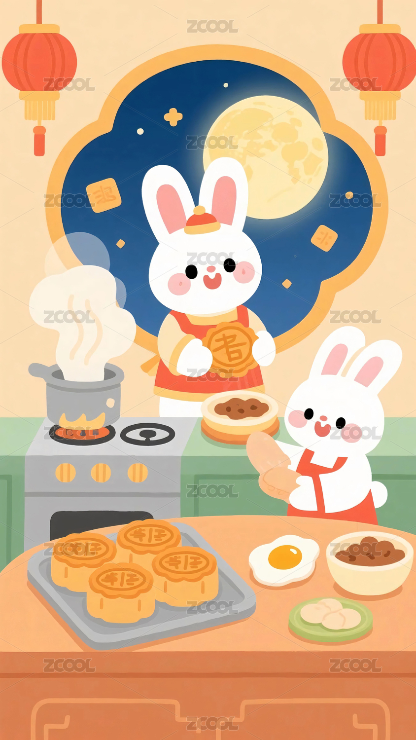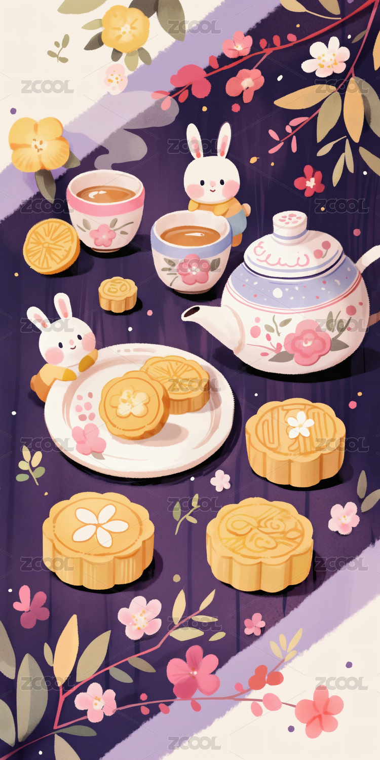 中秋节月饼兔子桂花礼盒月亮中式插画