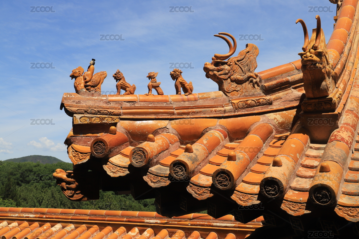 中国北京故宫宫殿上的飞檐走兽
