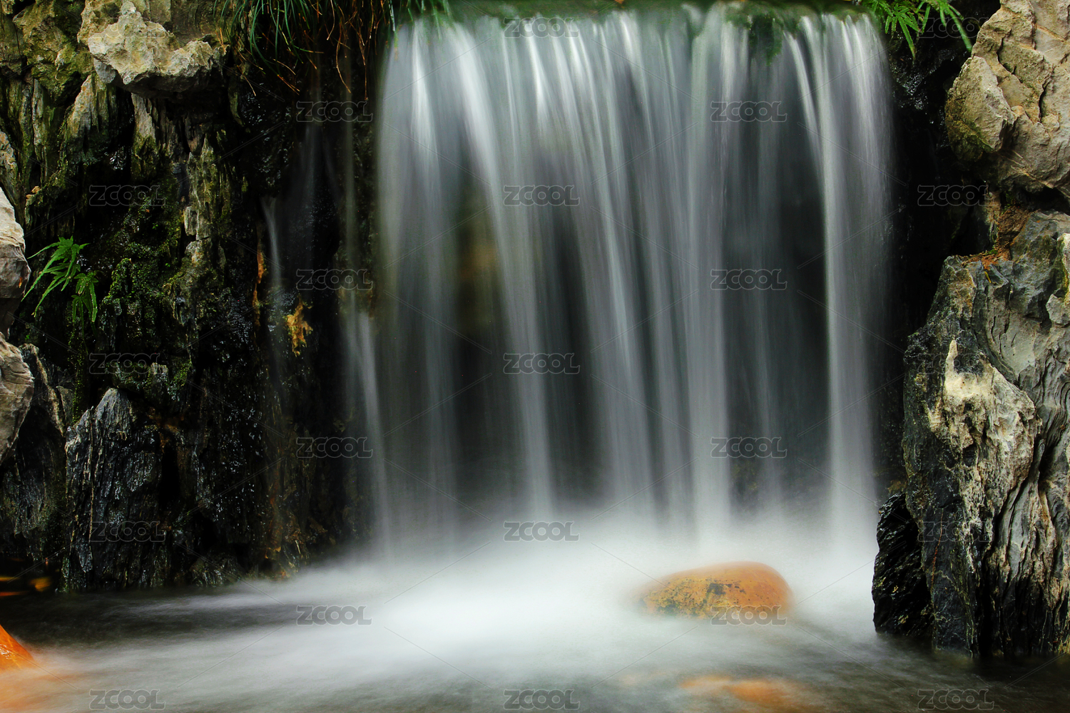 慢门,瀑布,公园,小景,水潭,假山,叠石,石景,水流,流水