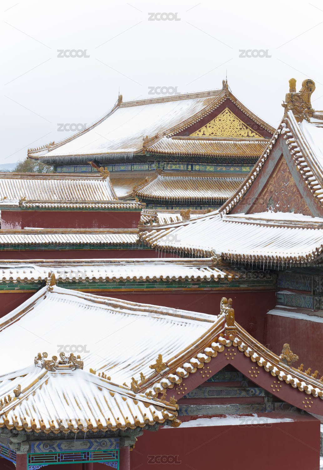 北京紫禁城下雪中故宫白茫茫一片的雪景