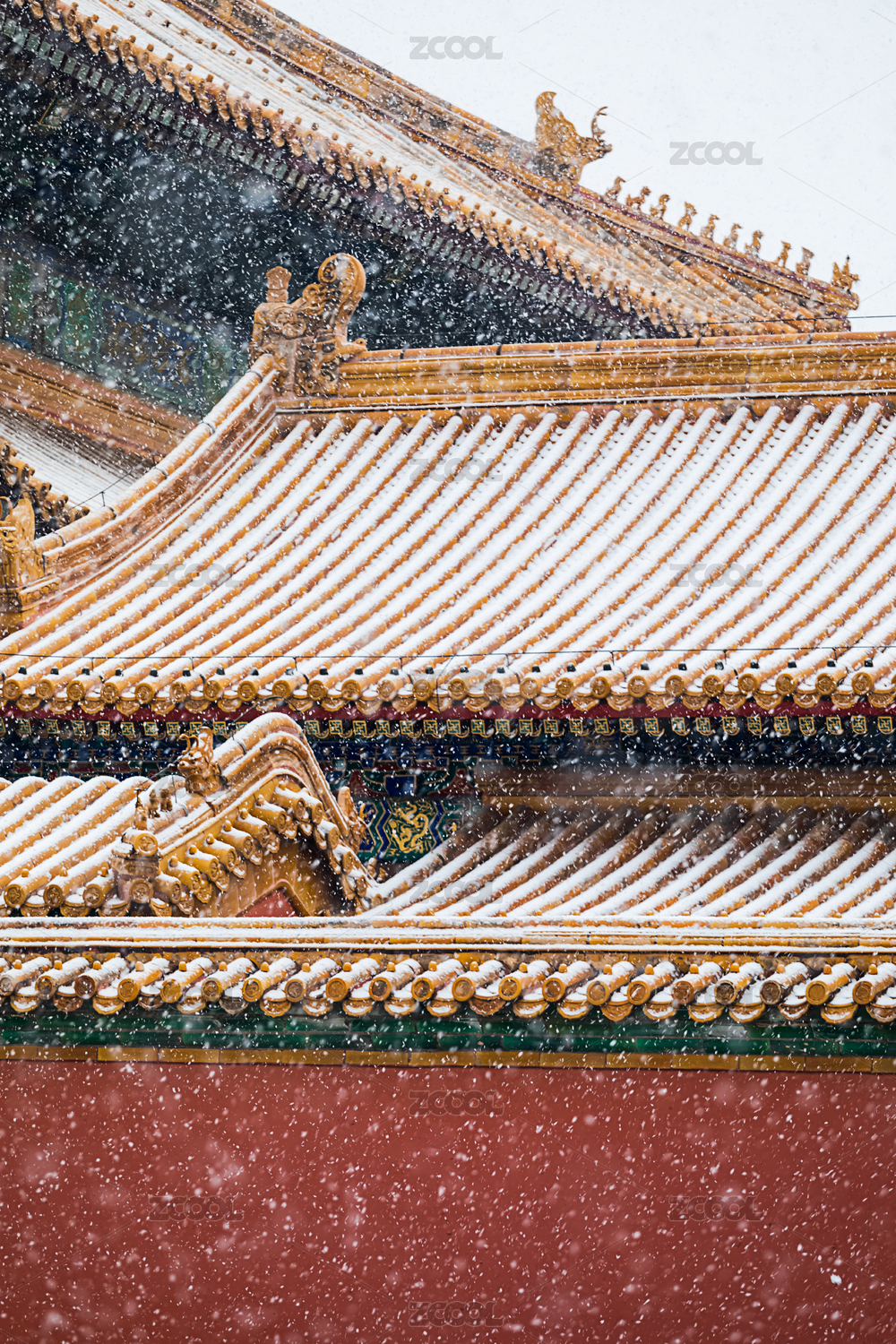 屋顶,建筑,故宫,文化,传统,雪花,雪,琉璃瓦,红墙,东方