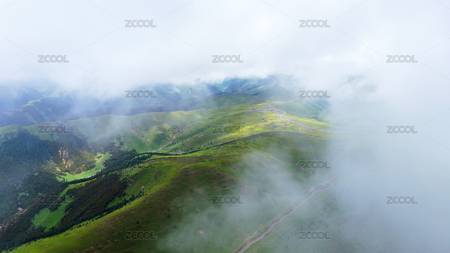蓝天白云阳光下桂林天湖高山山谷里的云海