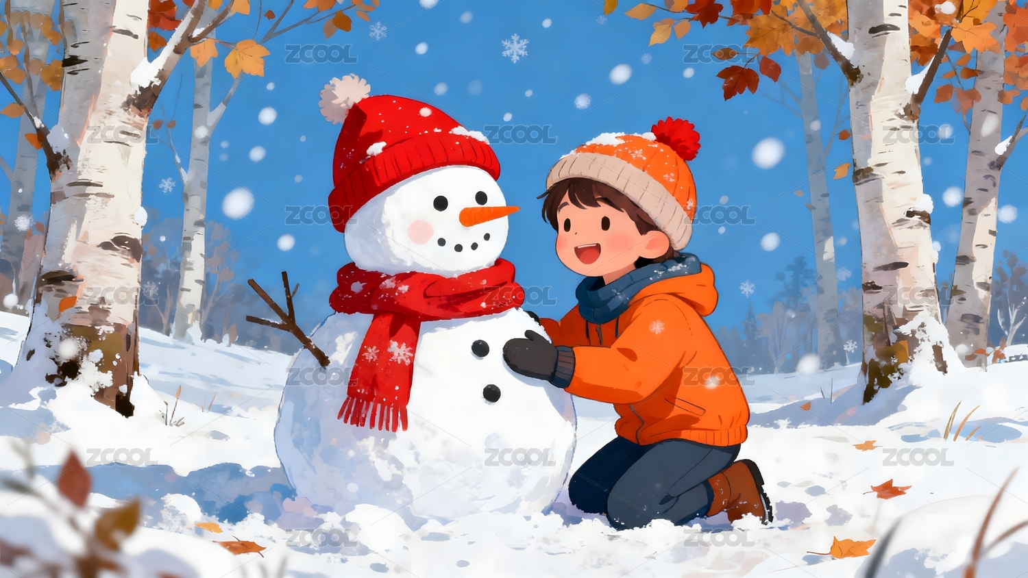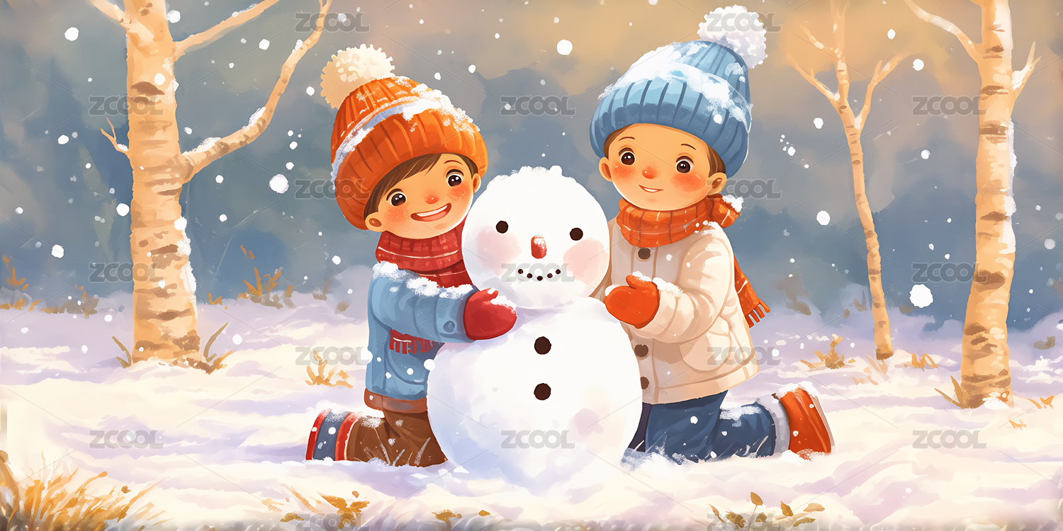 冬日雪景中,两女孩开心堆雪人,温馨又可爱