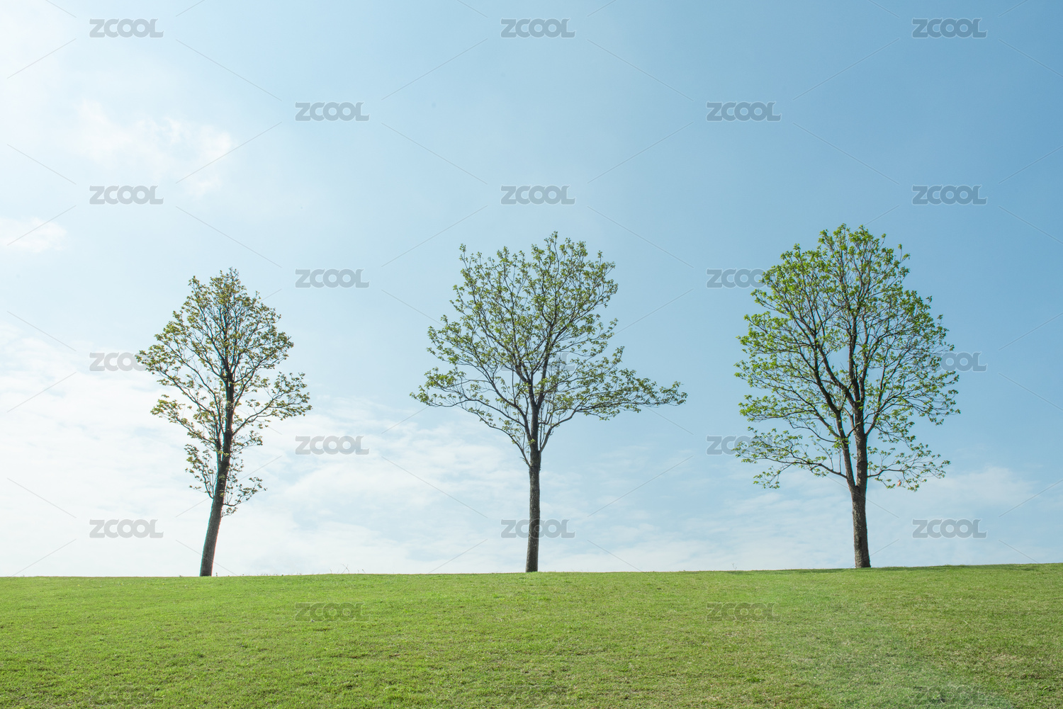 草地上的三棵树