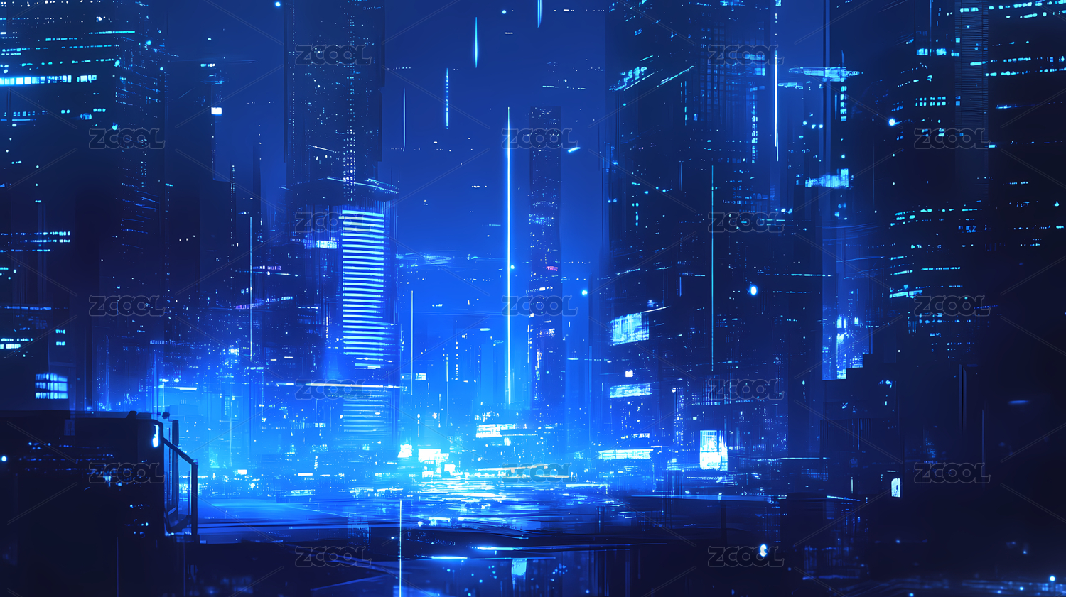 氛围,蓝色,梦幻,夜景,未来都市,科幻,建筑,高楼,灯光,科技
