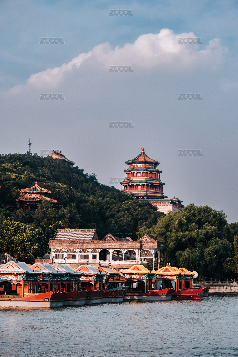 中国北京颐和园万寿山佛香阁昆明湖秋沙鸭