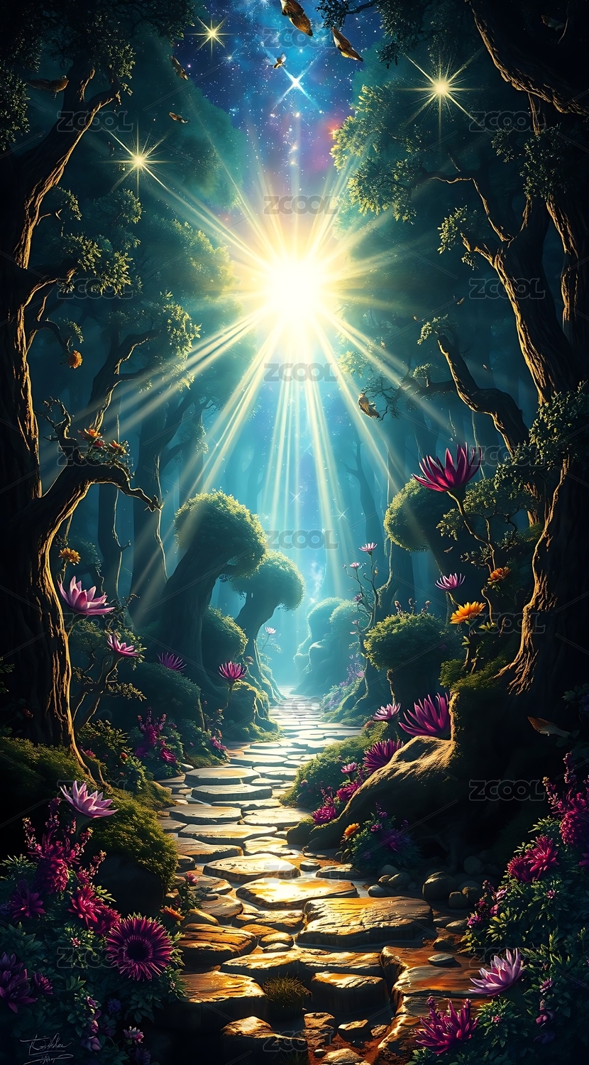 花,牡丹,背景,城堡,童话,路,植物,热带,花海,云