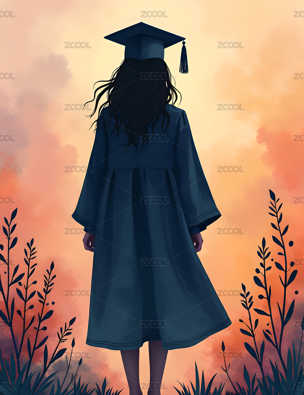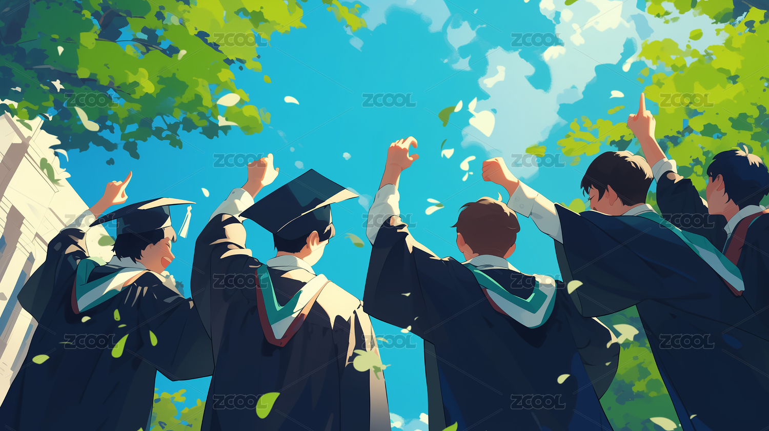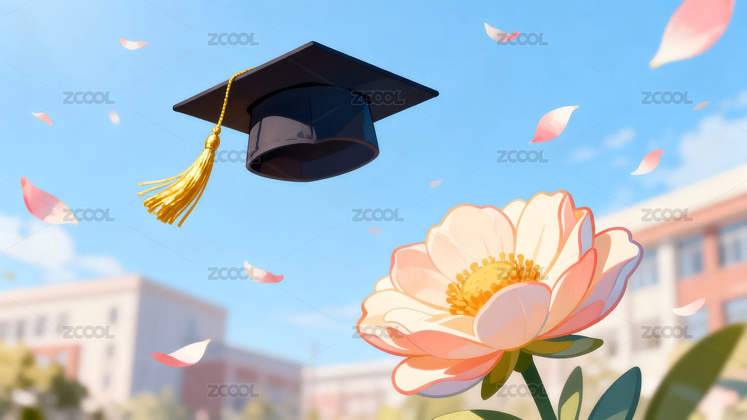 手绘,卡通,毕业季,毕业,学士帽,毕业生,校园,前程,插画