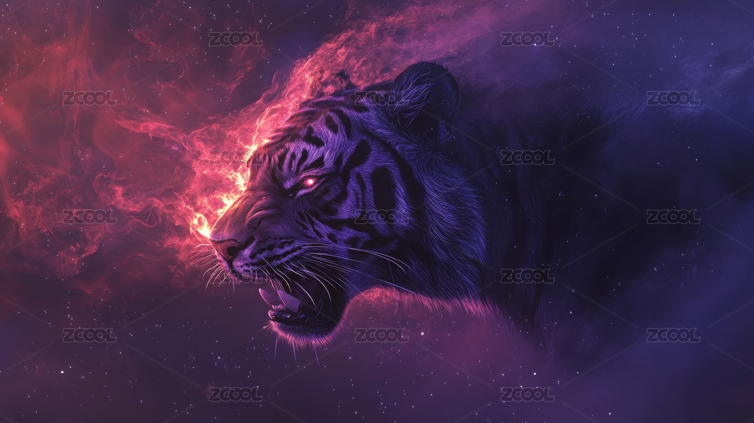 漂亮的高级金沙油漆质感艺术感老虎插画