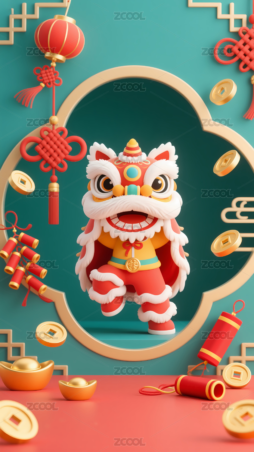 新年,春节,舞狮,喜庆,3d,庆祝,金币,电商,活动