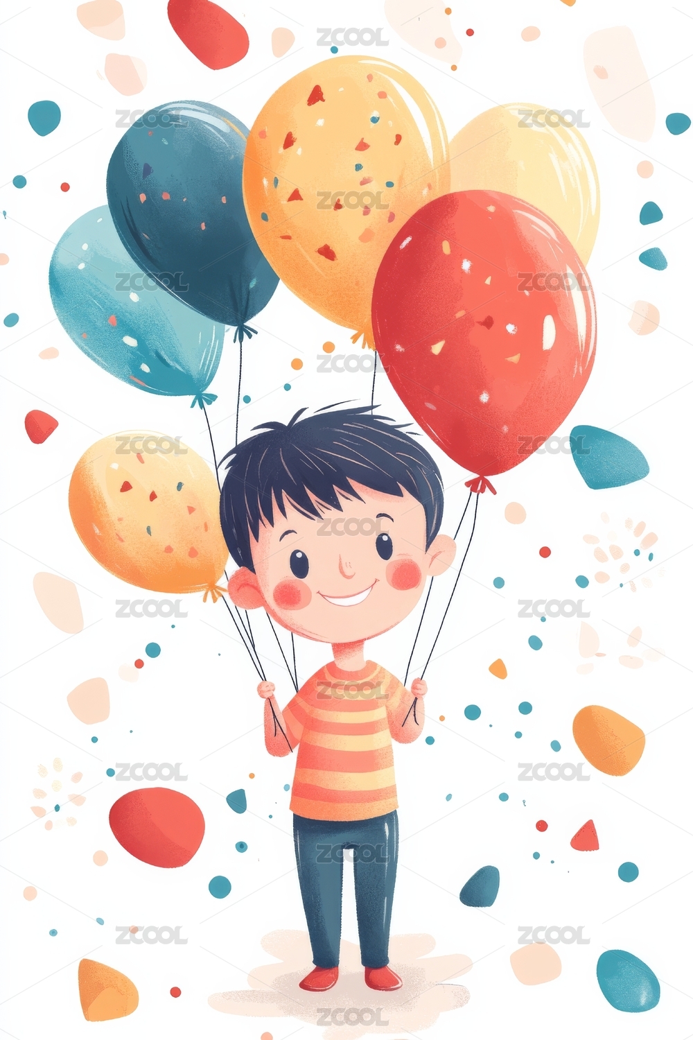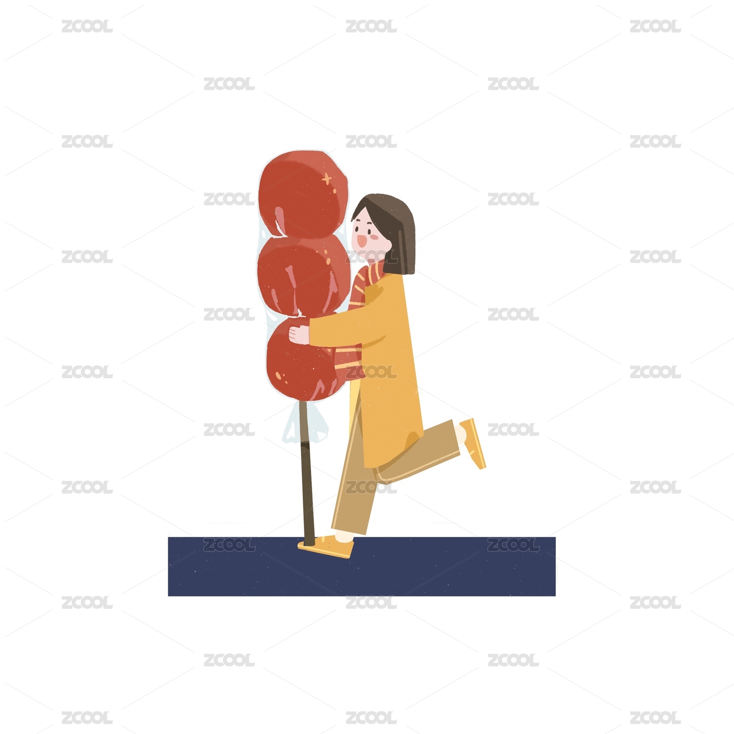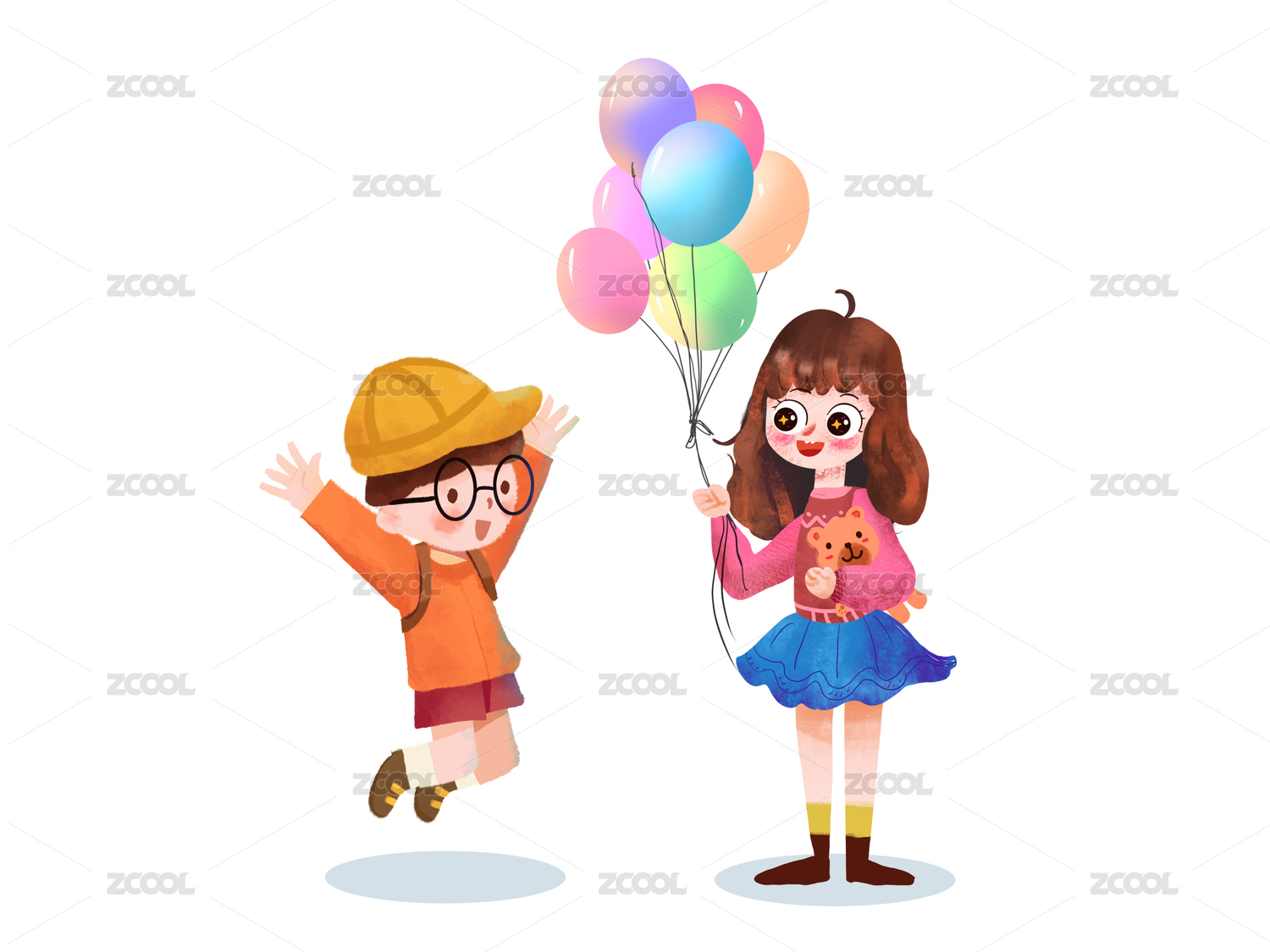 手绘插画欢乐的气氛中开心地跳跃的可爱女孩