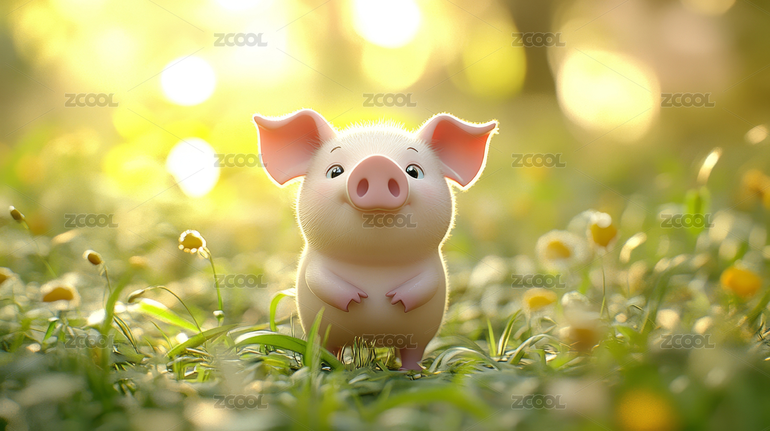 猪猪年可爱唯美野生动物3D卡通插画壁纸