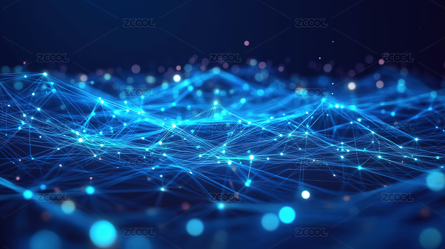 紫色光点与蓝色全息光线组成的数据网
