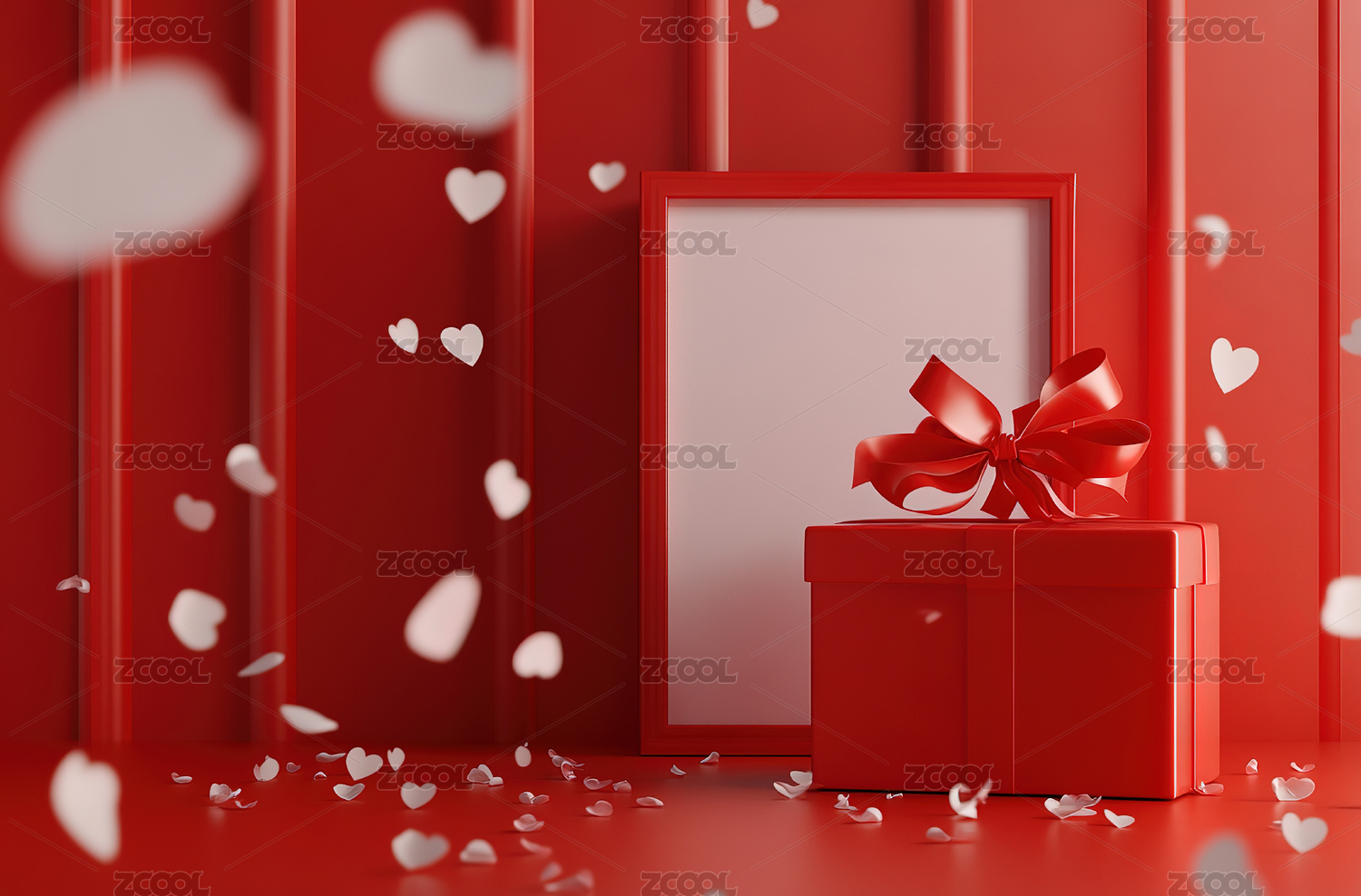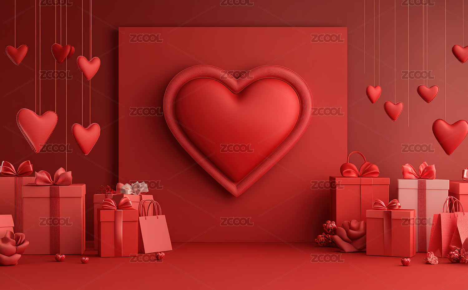红色背景下的心形礼物