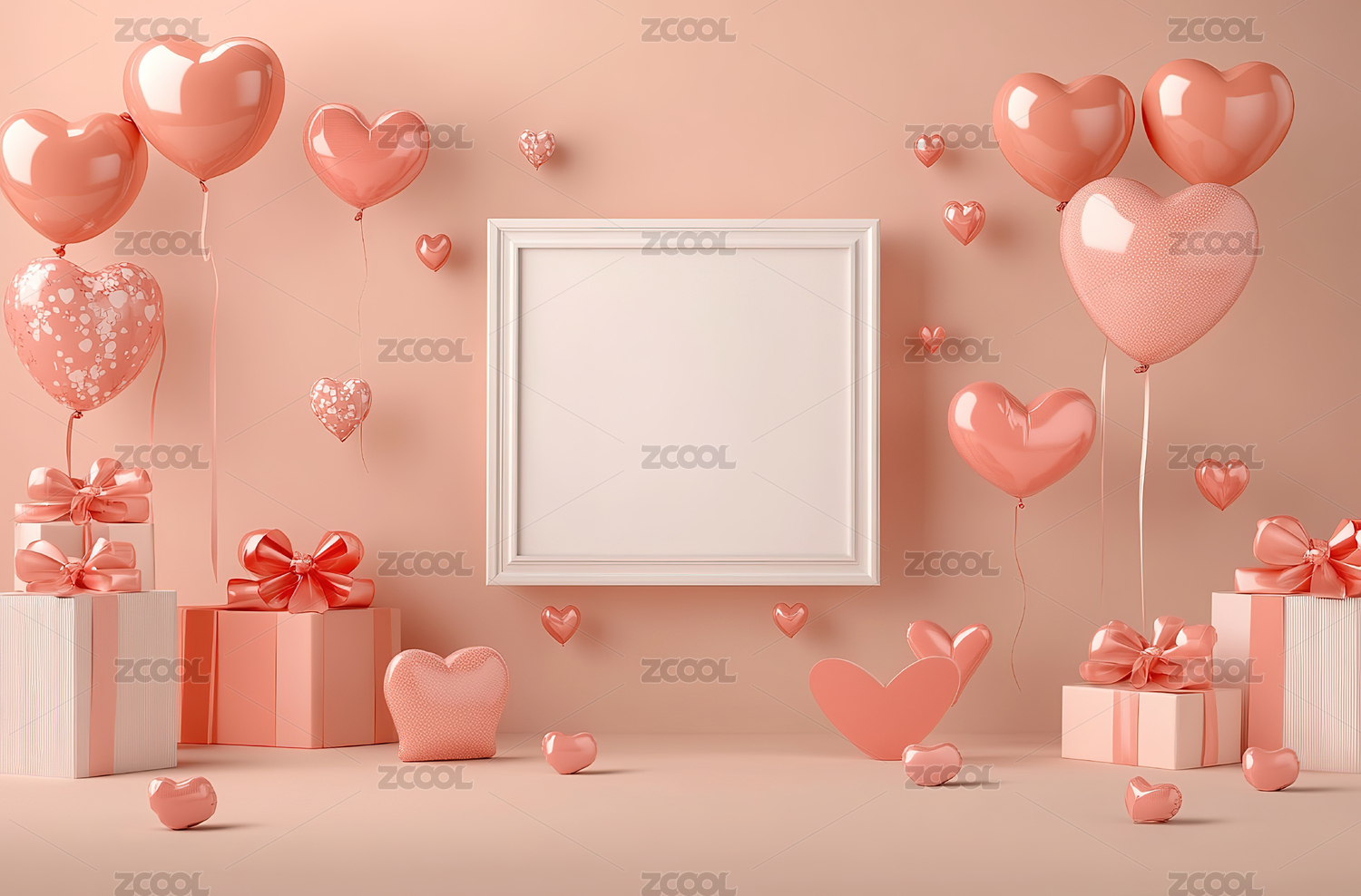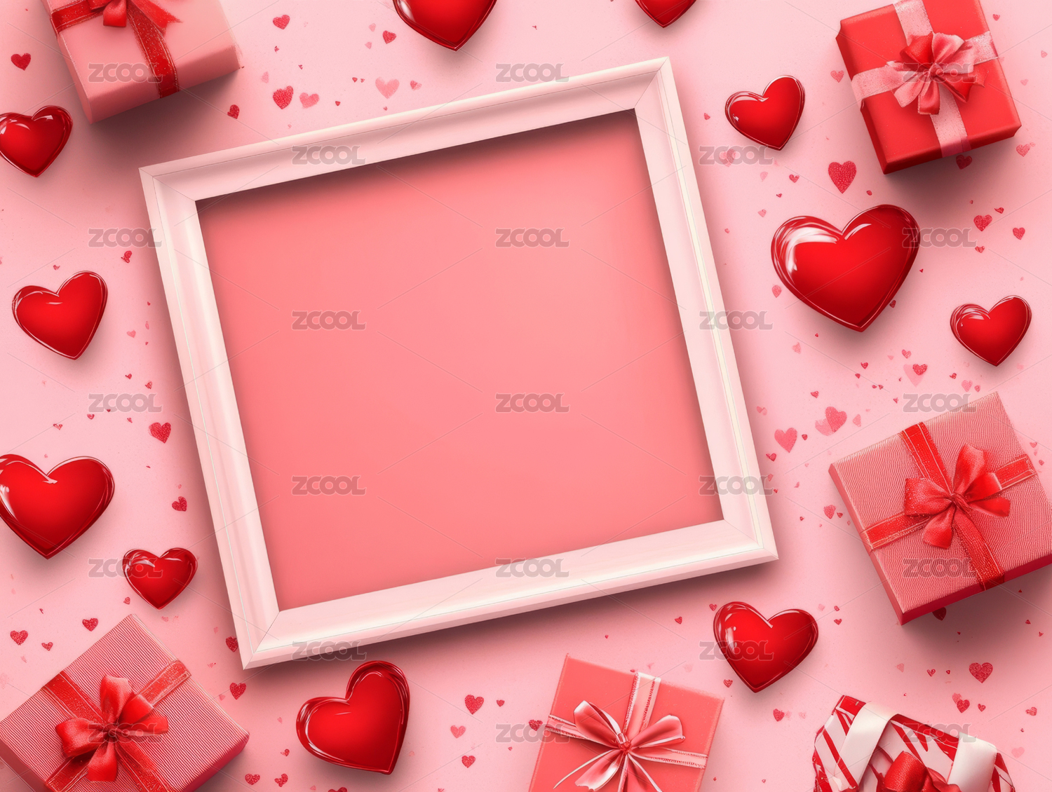 粉色,相框,海报,情人节,浪漫,爱,明亮,发光,插画,概念