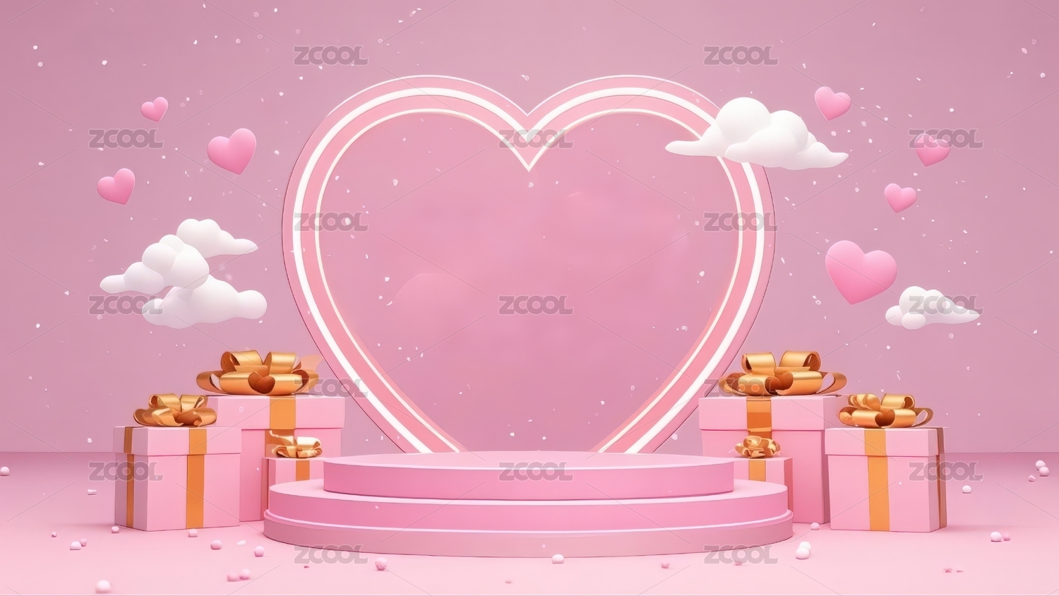 粉色心形舞台布置