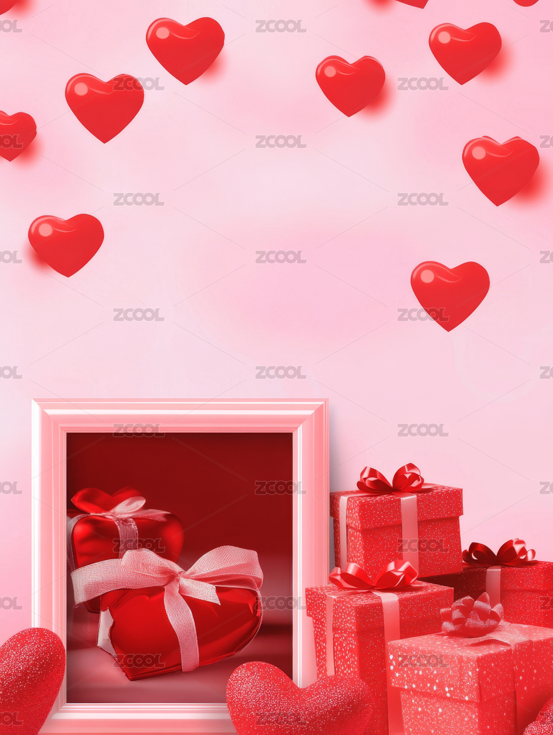 粉色相框情人节520爱心背景留白