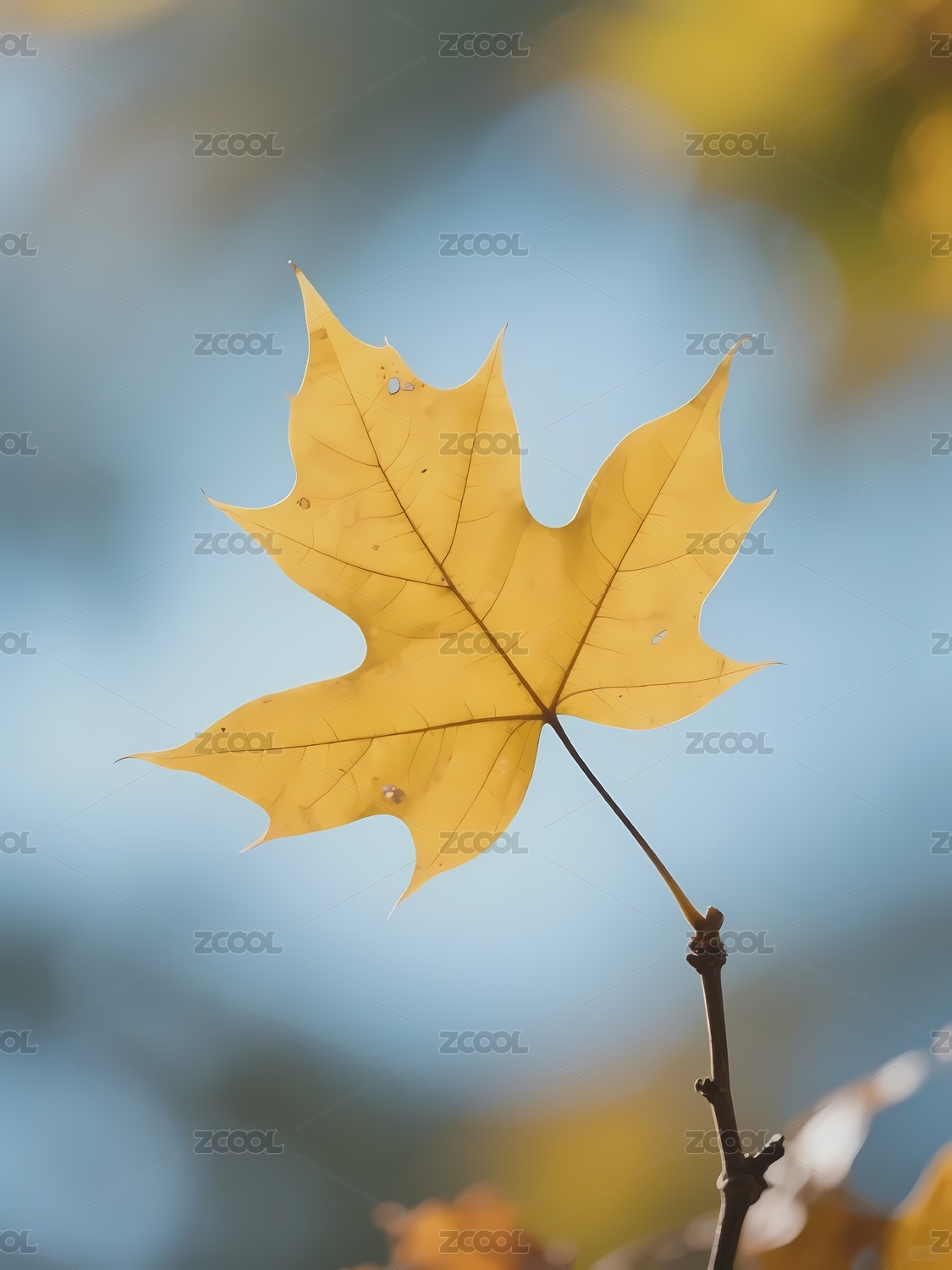 浅色背景下橙色秋叶