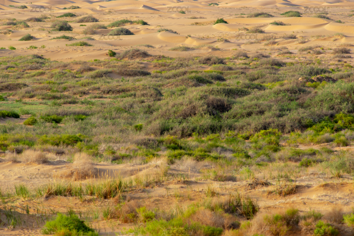 在内蒙古自治区巴彦淖尔市东部地区乌兰布和沙漠边缘的沙丘和草地