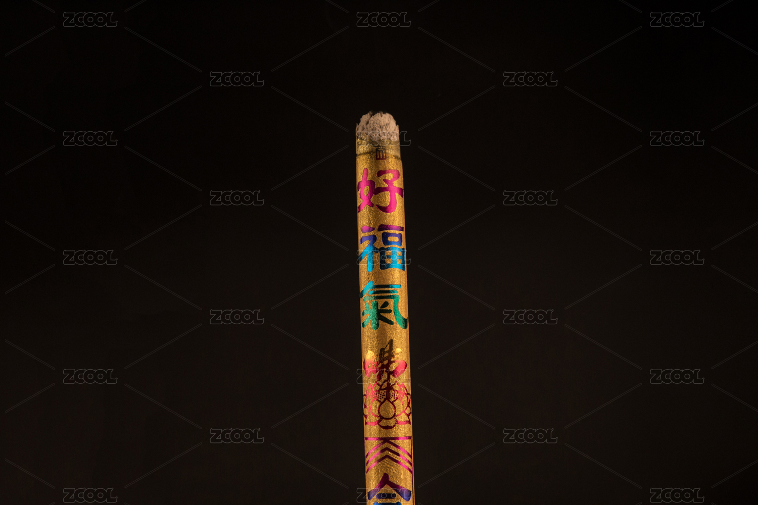 黑色背景一束线香沉香特写
