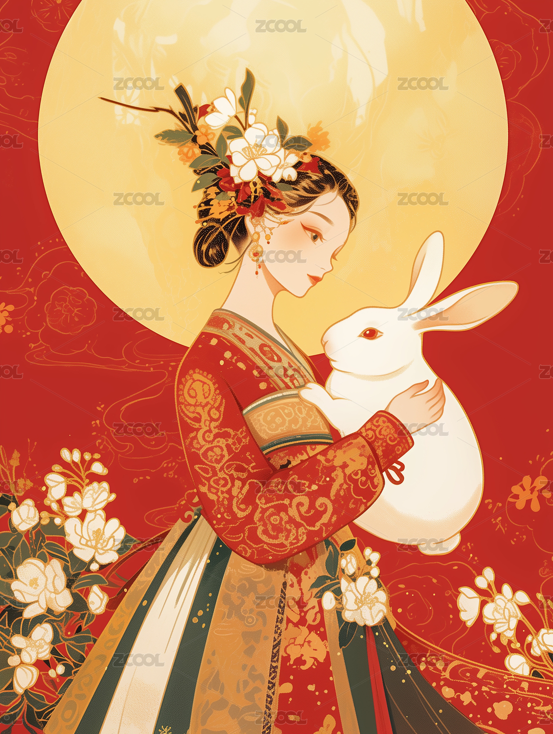 中秋节嫦娥抱着玉兔