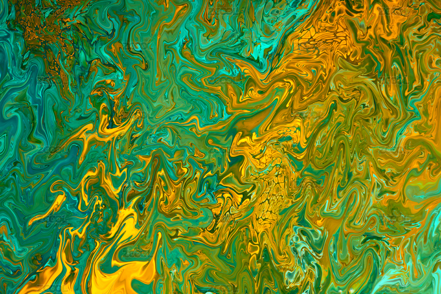 黄绿青混合颜料流体艺术,抽象的彩色背景墙纸纹理。