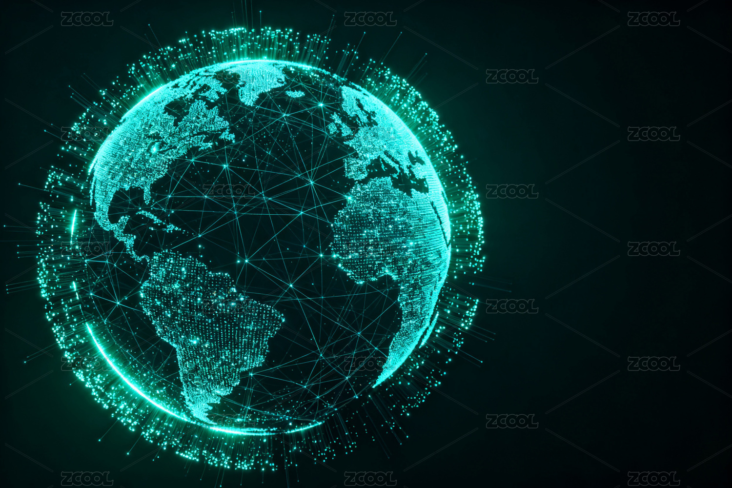 点和线连接组成的抽象地球,代表互联网、高科技,全球化、国际化,大数据科技背景图