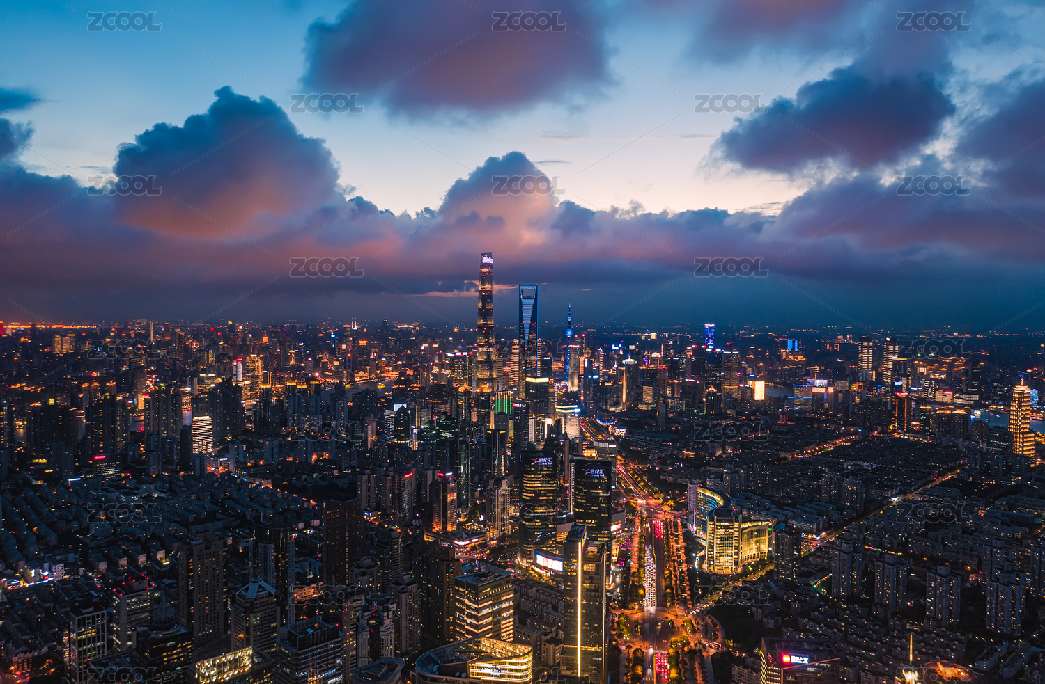 中国上海陆家嘴黄昏