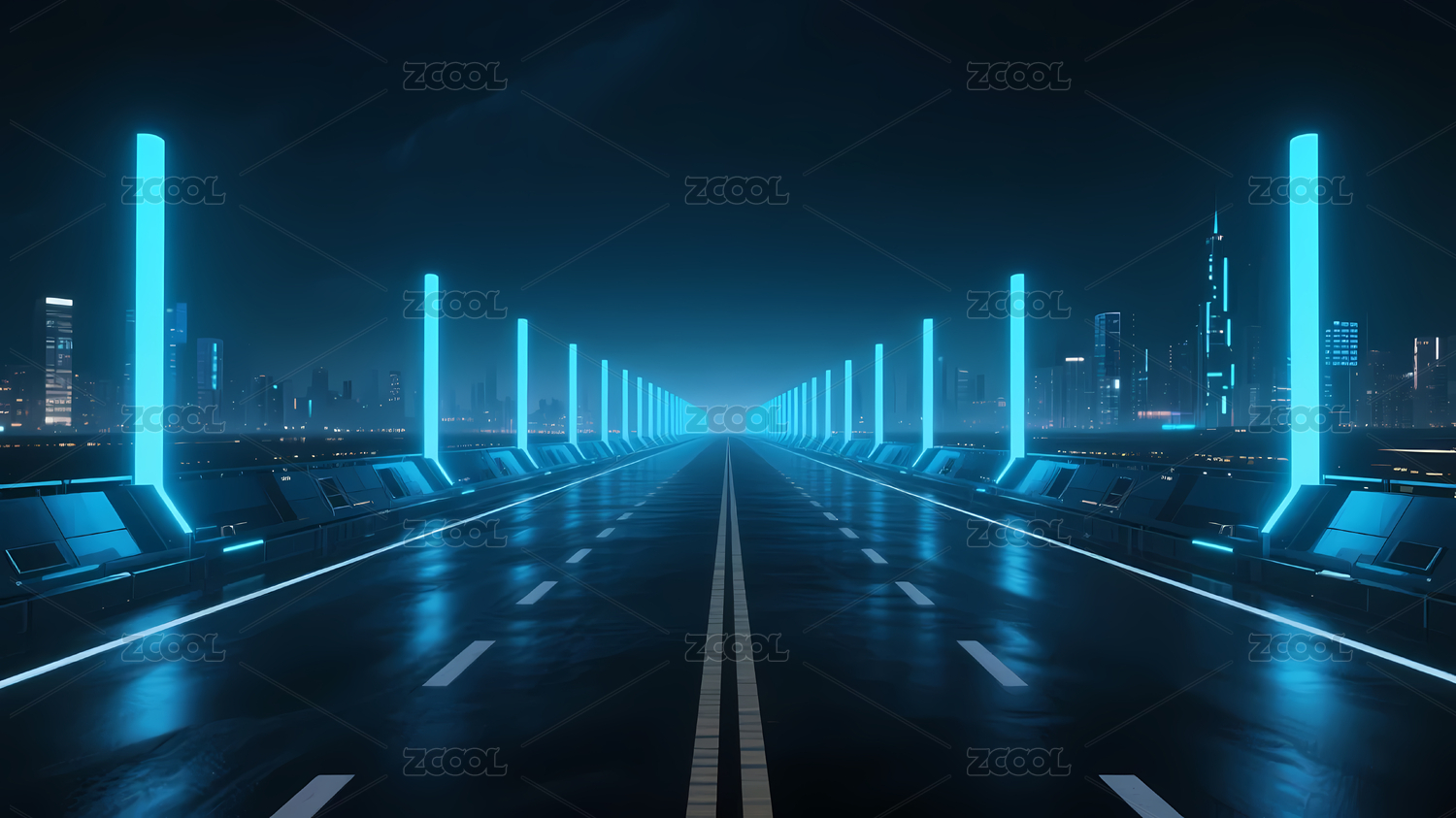 蓝色光影高速公路夜景未来科技感