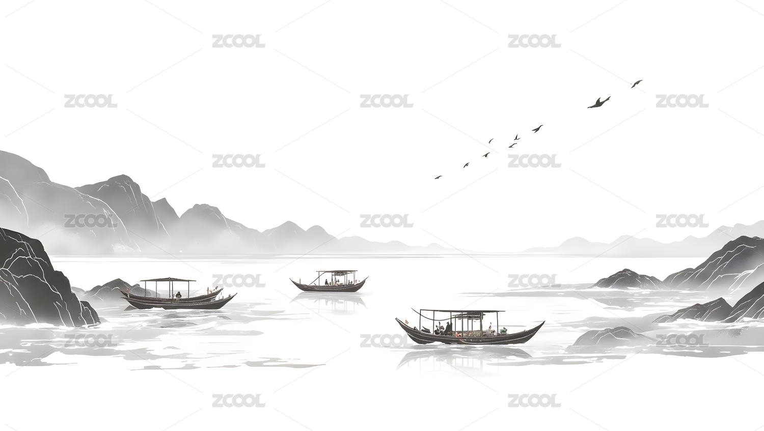水墨山水渔舟图