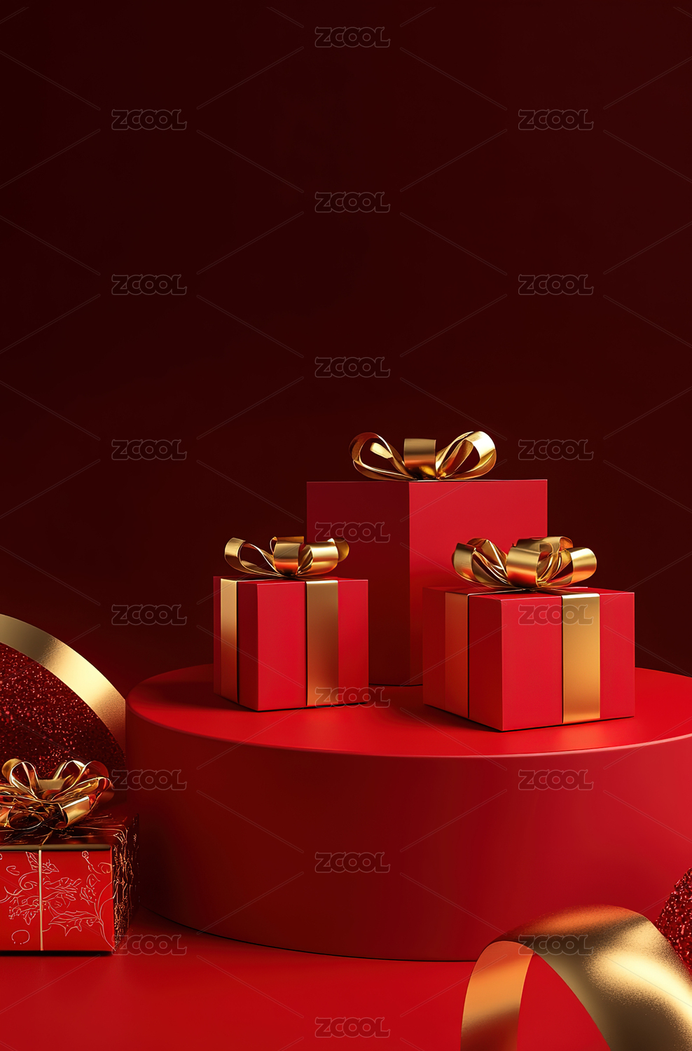 3D红色礼物盒电商大促展台背景