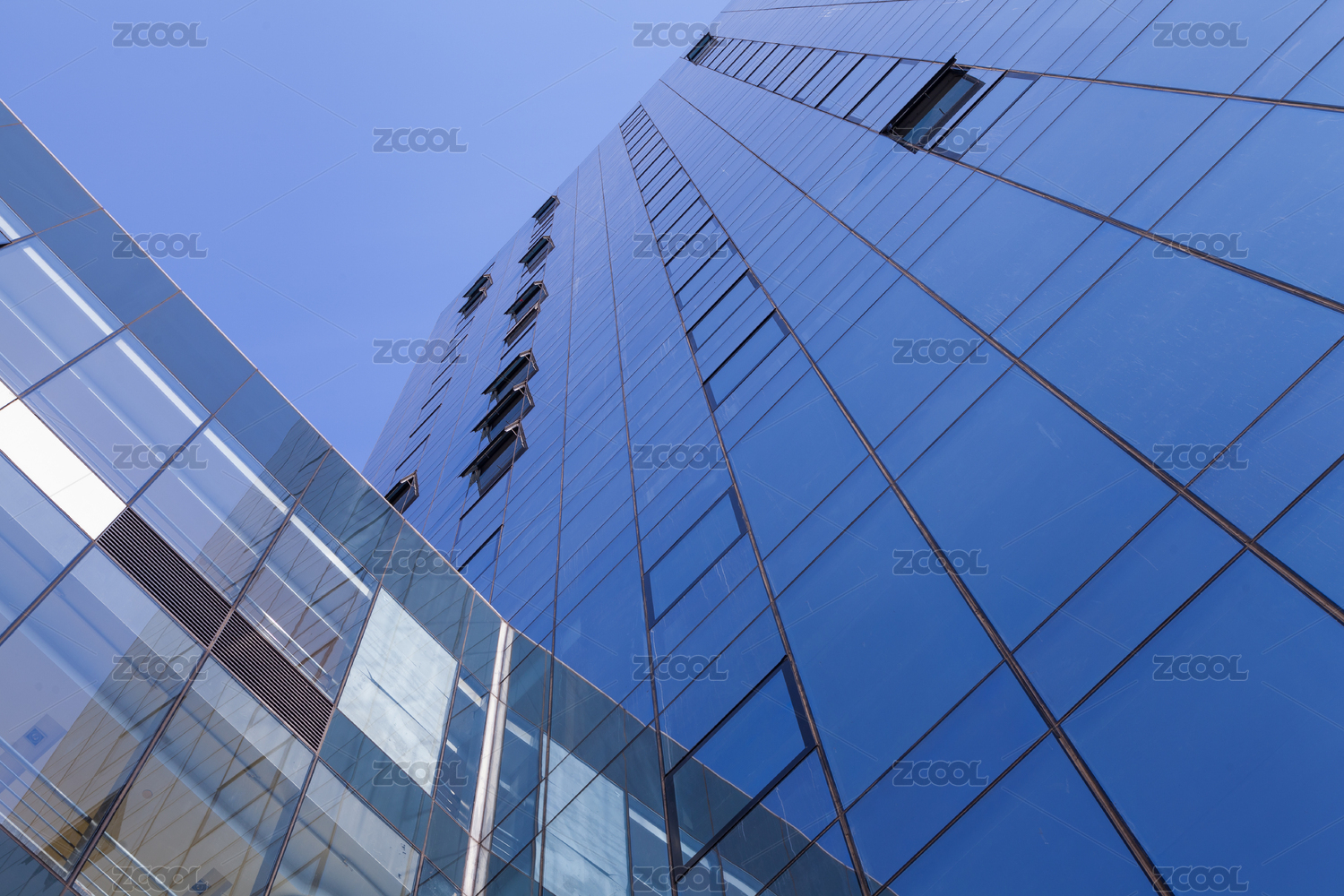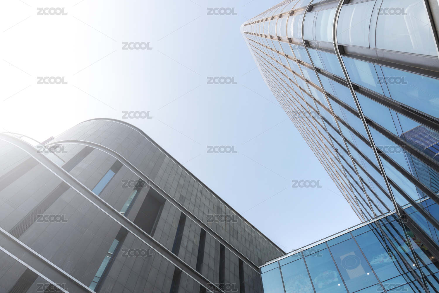 低角度拍摄金融中心摩天大楼玻璃外墙