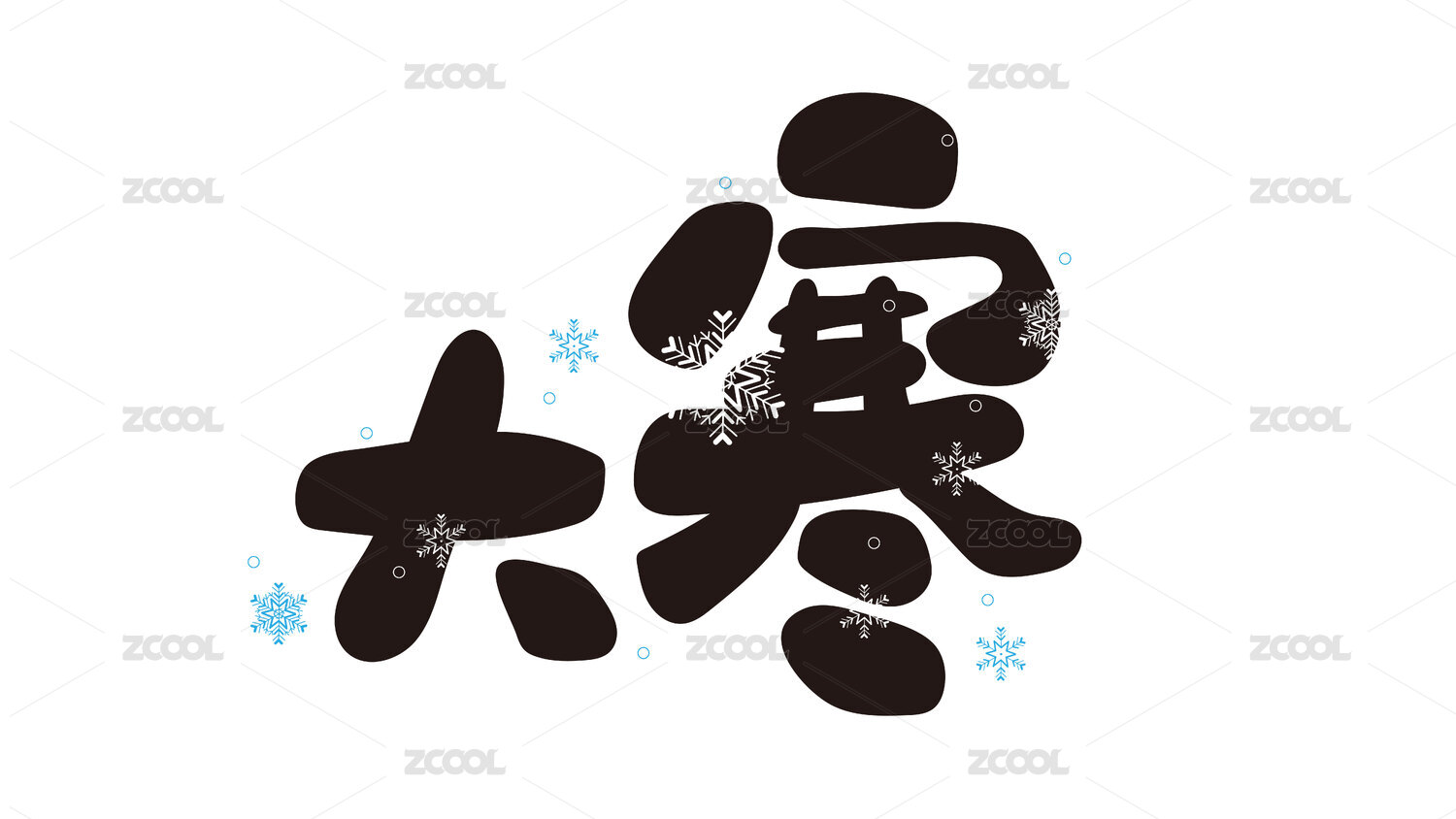 大寒字飘零着朵朵雪花