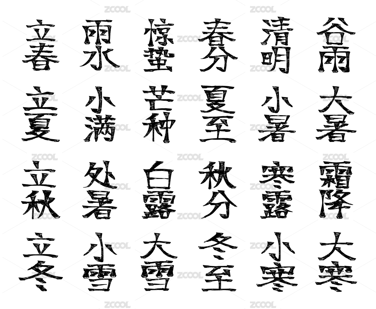 二十四节气国风汉字毛笔字体