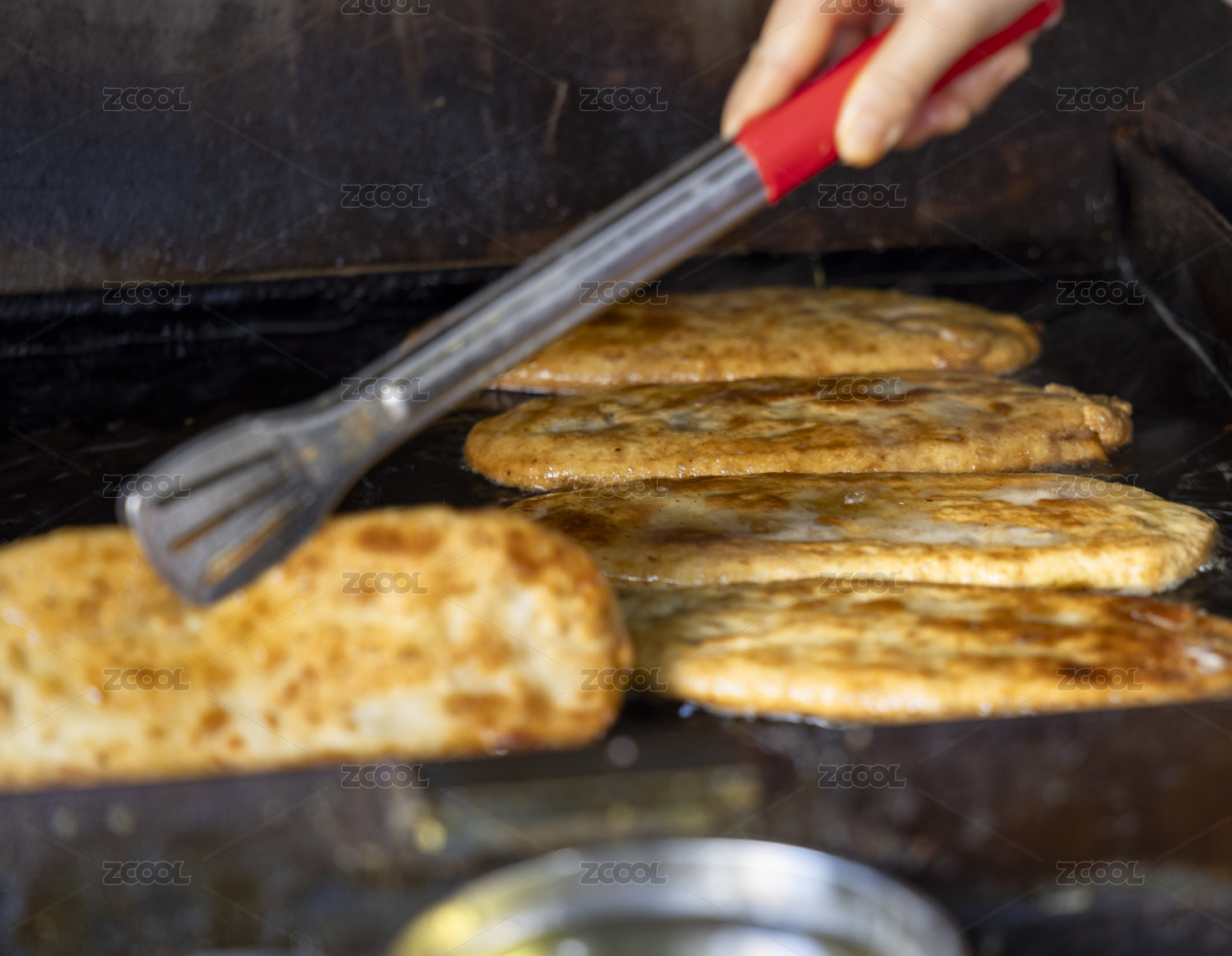 中国四川成都彭州军屯锅盔小吃店制作锅魁