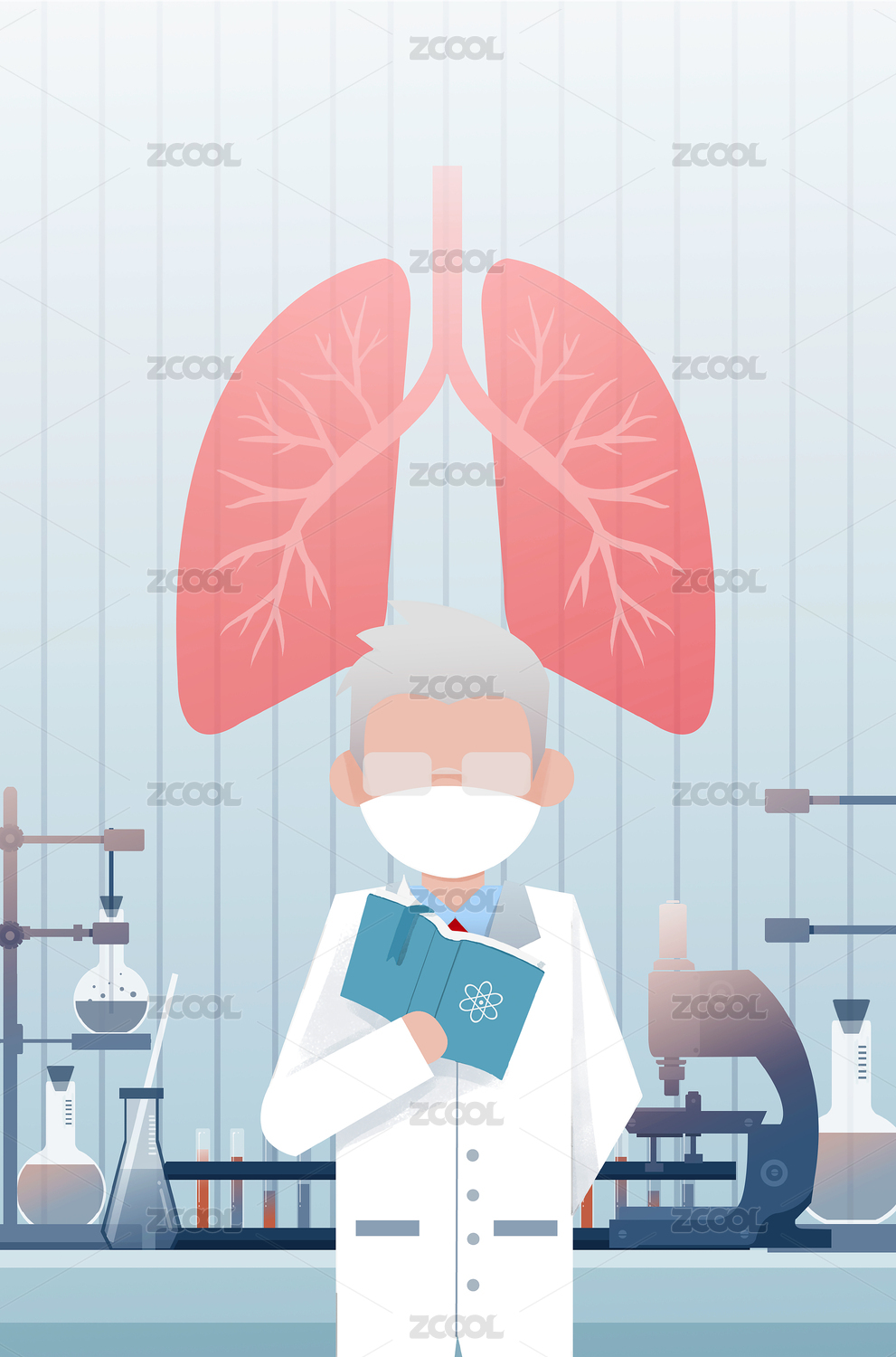 蓝粉色扁平风矢量肺科场景肺部检验元素