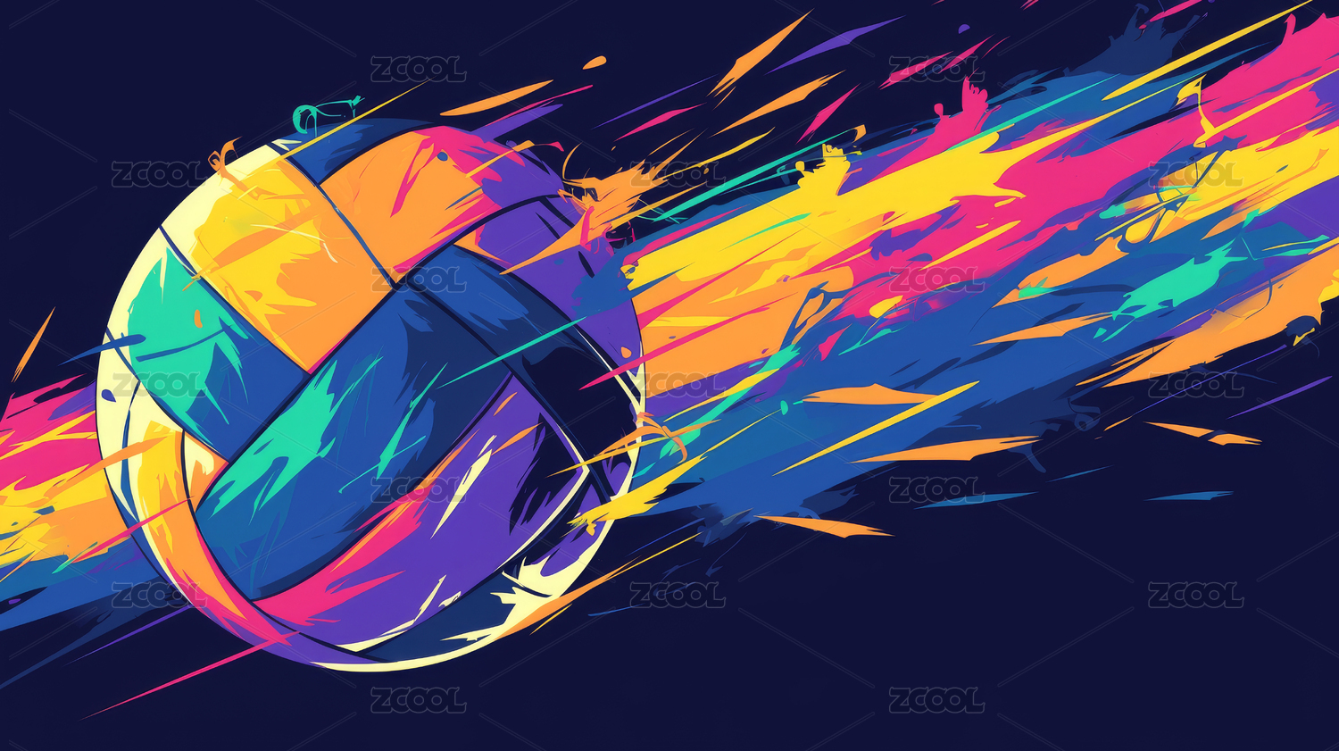 白底,清新,明亮,空中,飞行,彩色,尾迹,排球,涂鸦,色块
