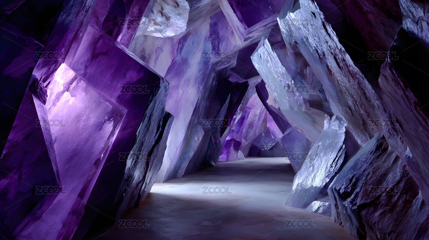 梦幻紫色水晶宝石展台展厅3D洞穴空间场景