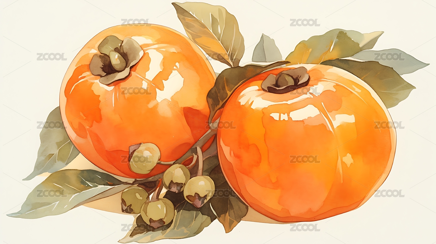 柿子,绘画,手绘,涂鸦,色块,水彩,新鲜,橙色,水果,食物