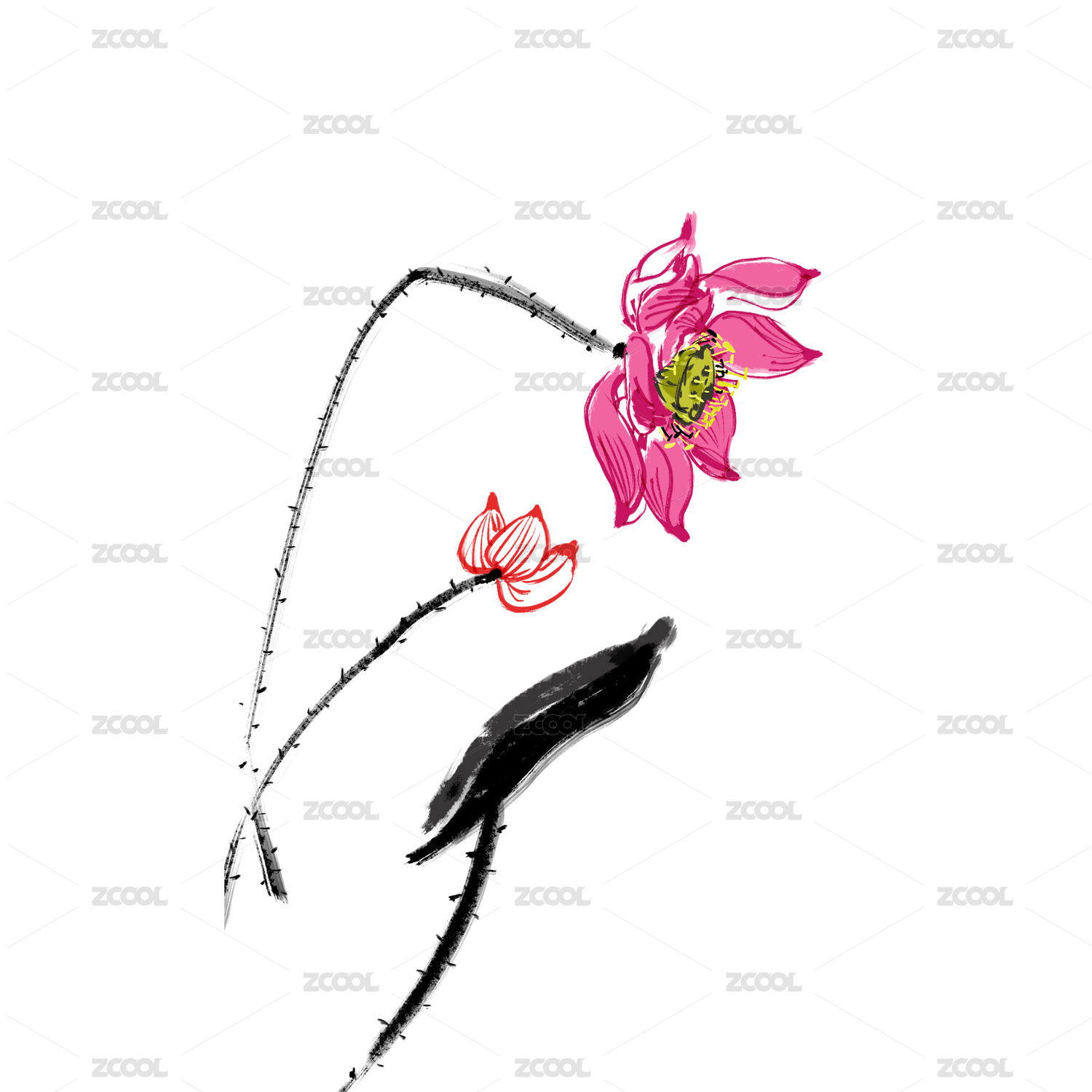 中式,中国风,国风,古风,国潮,荷花,水彩,水墨,清新,简约
