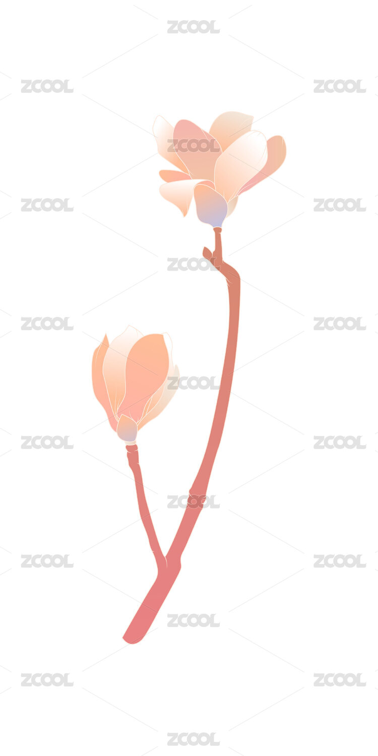 白色背景上有一朵带有茎的粉红色花朵高清图