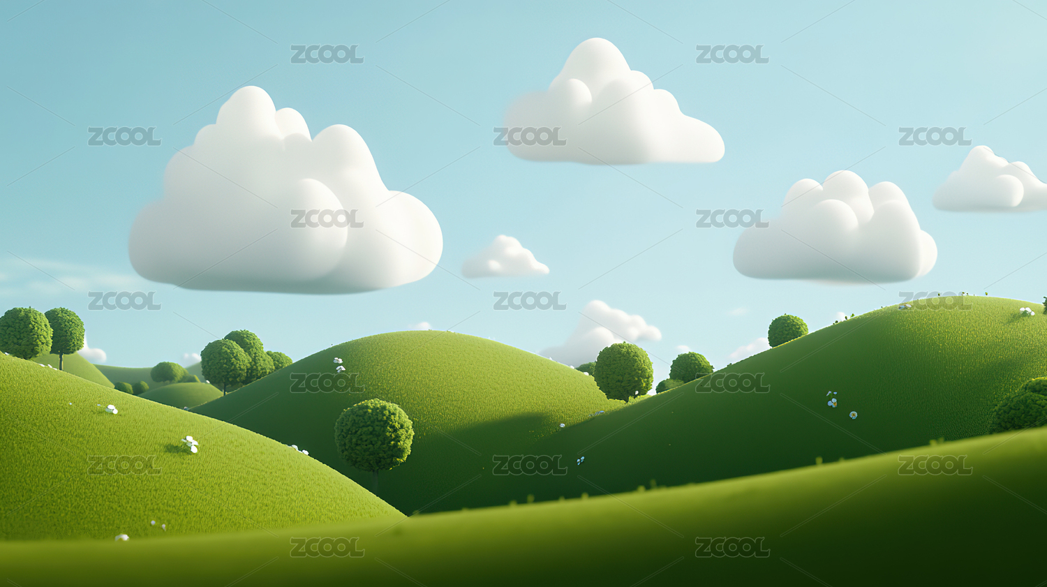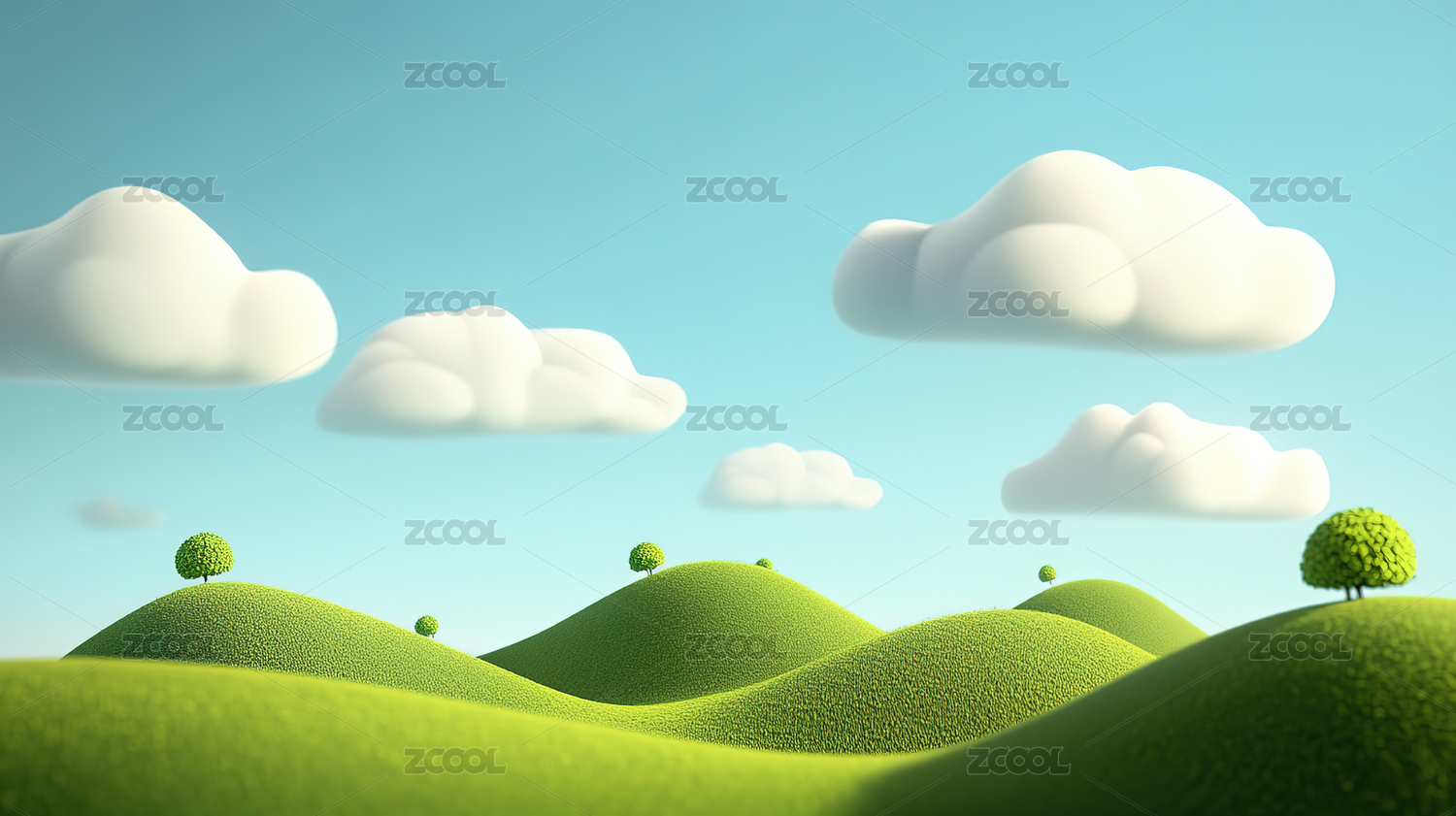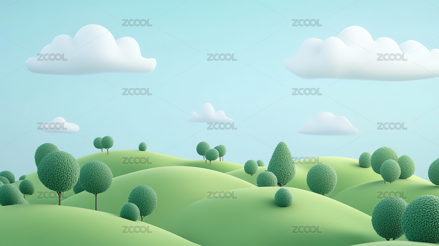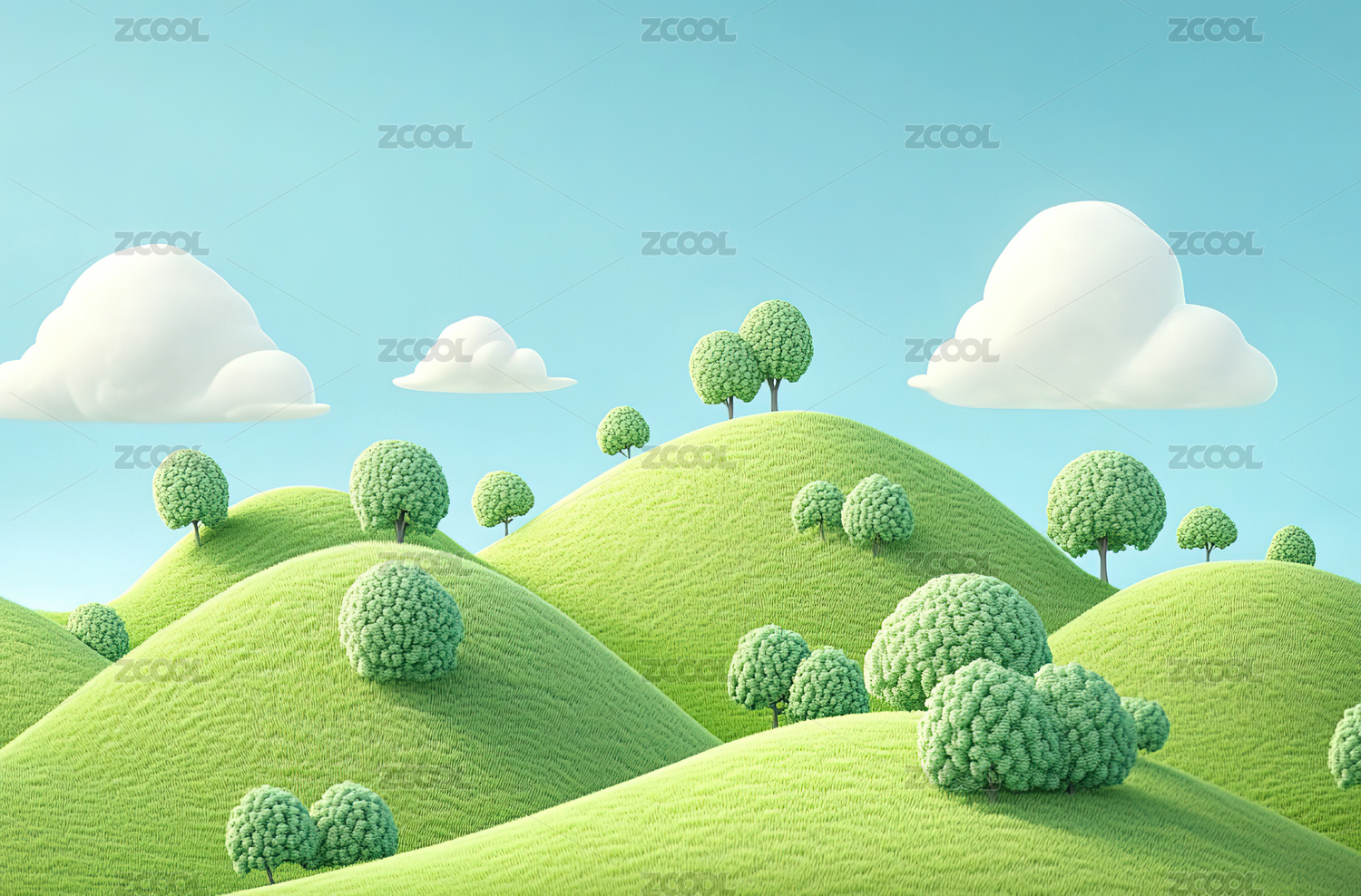 绿色羊毛毡毛绒毛线田野3D卡通立体插画